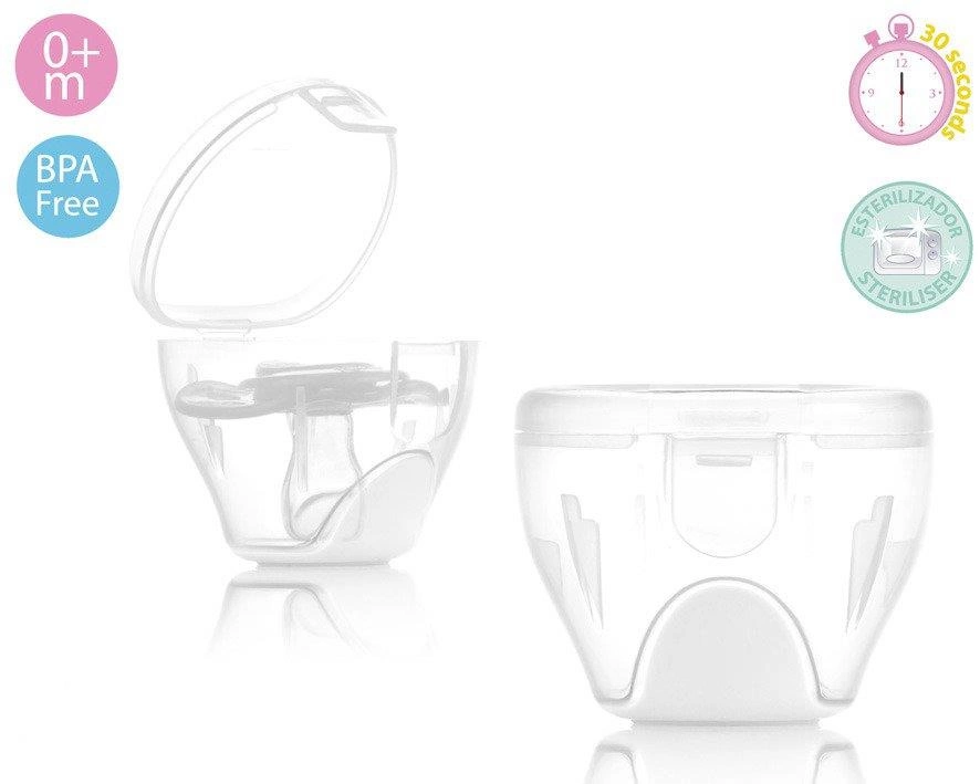 Sterylizator sprawdzi się nie tylko jako pudełeczko, w którym możemy przechowywać smoczek w sposób higieniczny w torbie przy wózku czy torebce mamy, ale umożliwi nam wysterylizowanie smoczka poza domem, wszędzie tam, gdzie będziemy mieli dostęp do kuchenki mikrofalowej!