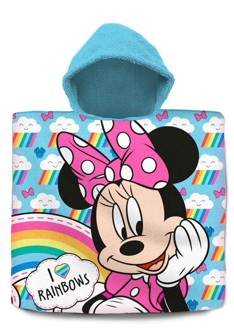 Poncho kąpielowe z motywem Myszki Minnie zawsze potrzebne w domu , na basenie czy na plaży. Miękkie i przyjemne w dotyku.