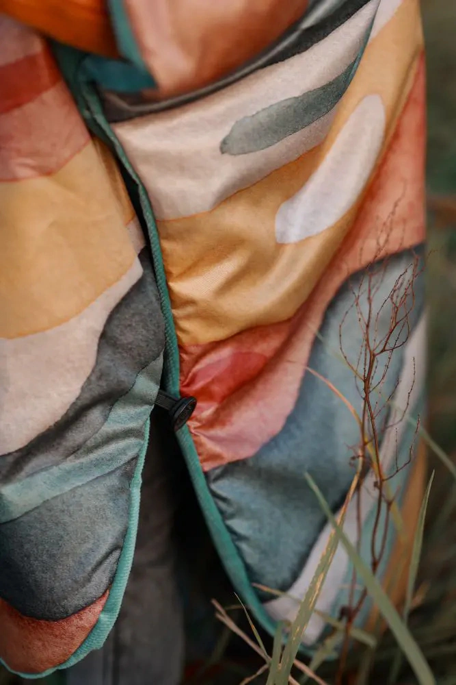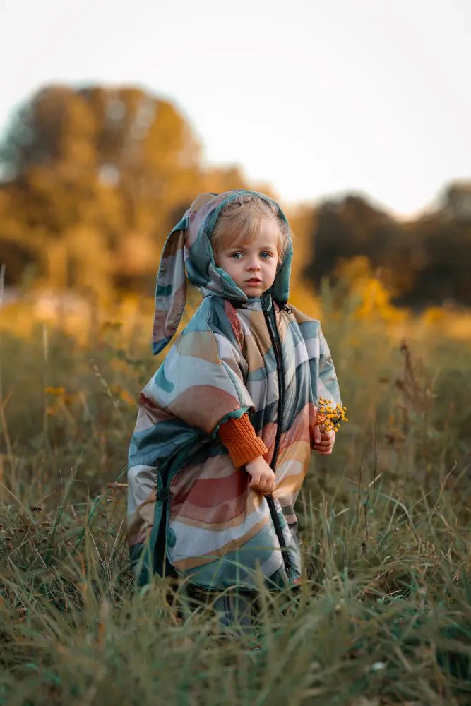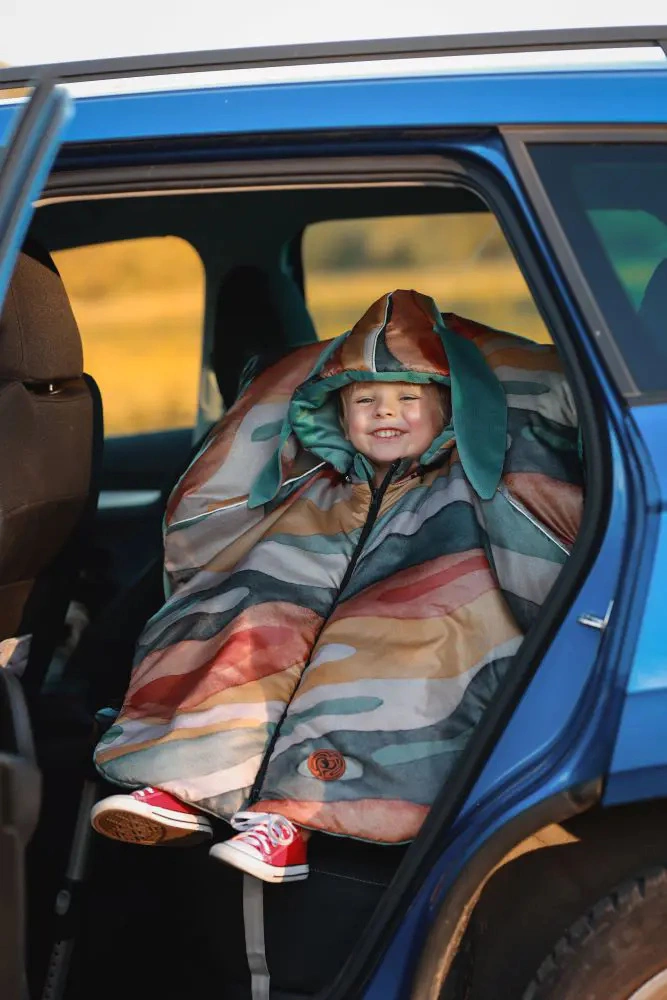 • Bezpieczna podróż w foteliku: Nasze ponczo pozwala na prawidłowe zapięcie pasów bezpieczeństwa pod spodem, eliminując ryzyko związane z przewożeniem dziecka w grubej kurtce. Pamiętaj, że zapinanie pasów na kurtkę stwarza niebezpieczną iluzję prawidłowego zabezpieczenia, podczas gdy w rzeczywistości pasy mogą być zbyt luźne, zwiększając ryzyko obrażeń w razie wypadku.