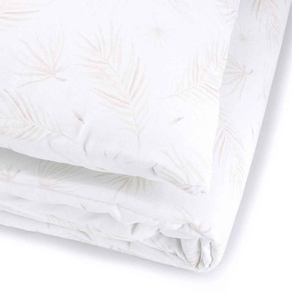 Komplet wykonany jest obustronnie z bawełny najwyższej jakości w starannie dobranych kolorach i wzorach . W środku wypełniony antyalergiczną, lekką, silikonową włókniną zapewniającą ciepło i jeszcze więcej miękkości.