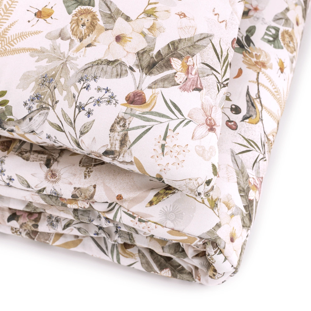 Komplet wykonany jest obustronnie z bawełny najwyższej jakości w starannie dobranych kolorach i wzorach . W środku wypełniony antyalergiczną, lekką, silikonową włókniną zapewniającą ciepło i jeszcze więcej miękkości.