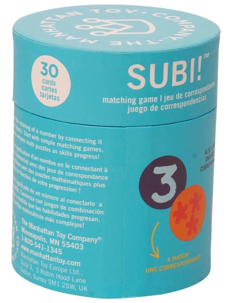 Poznaj cyfry z Subi, grą matematyczno- liczbową która wprowadzi elementy nauki do zabawy. Dzięki 30 kartom na których przedstawione są cyfry, ich nazwy w języku angielskim oraz wzór graficzny odpowiadający ich wartością możesz bawić się w dopasowywanie, zabawy memo oraz tworzyć proste działania matematyczne. Zestaw składa się z 30 kart.