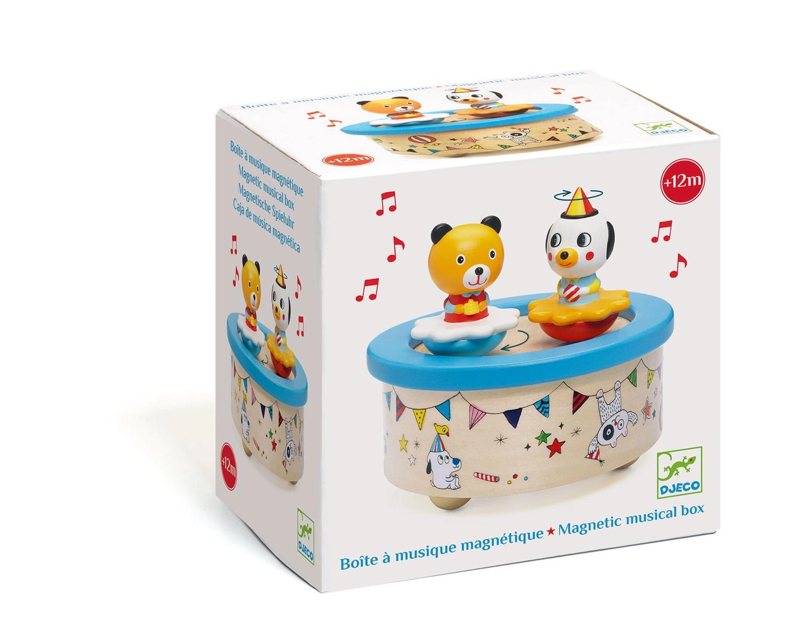 Drewniana, pięknie wykonana pozytywka Djeco. Po nakręceniupozytywki, figurki obracają się na podstawie oraz wokół własnej osi.Pozytywka wygrywa piękną melodię: "Kołysanka" Franz Schubert