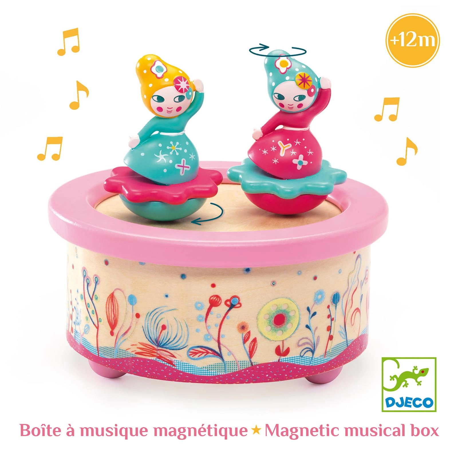 Drewniana, pięknie wykonana pozytywka Djeco. Po nakręceniu pozytywki,