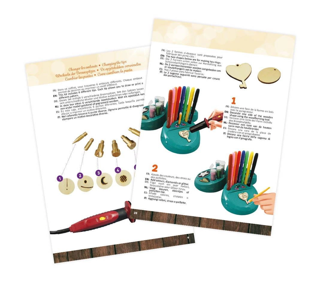 Narzędzie do wypalania w drewnie jest wyposażone w osłonę zapobiegającą oparzeniom oraz regulację temperatury.
