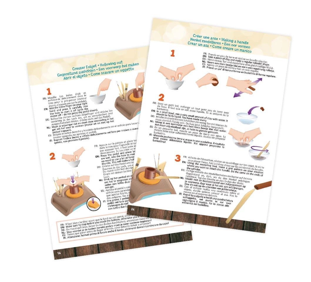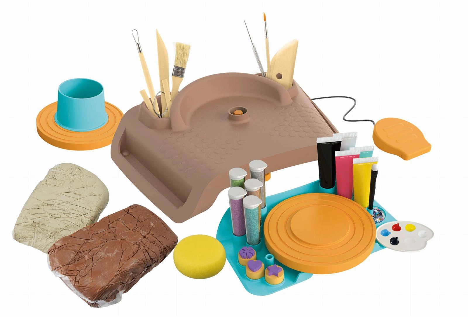 Klucz do sukcesu? Foremka została specjalnie zaprojektowana do odmierzania potrzebnej ilości gliny i jej prawidłowego wyśrodkowania na kole, aby zapewnić udany początek tworzenia. Po wykonaniu projektu, wystarczy przenieść go razem z kołem na wysuwaną szufladę-przybornik i pozostawić na kilka dni do wyschnięcia. Następnie można go udekorować. W oczekiwaniu na wyschnięcie danego elementu można tworzyć nową rzecz, ponieważ zestaw zawiera drugie,