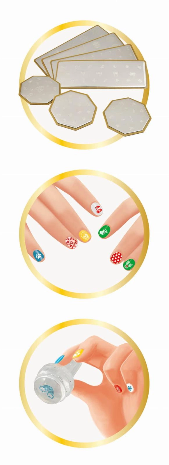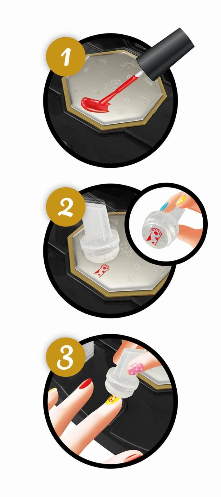 Wybierz szablon, dodaj kroplę lakieru, pobierz wzór na stempel i przyciśnij