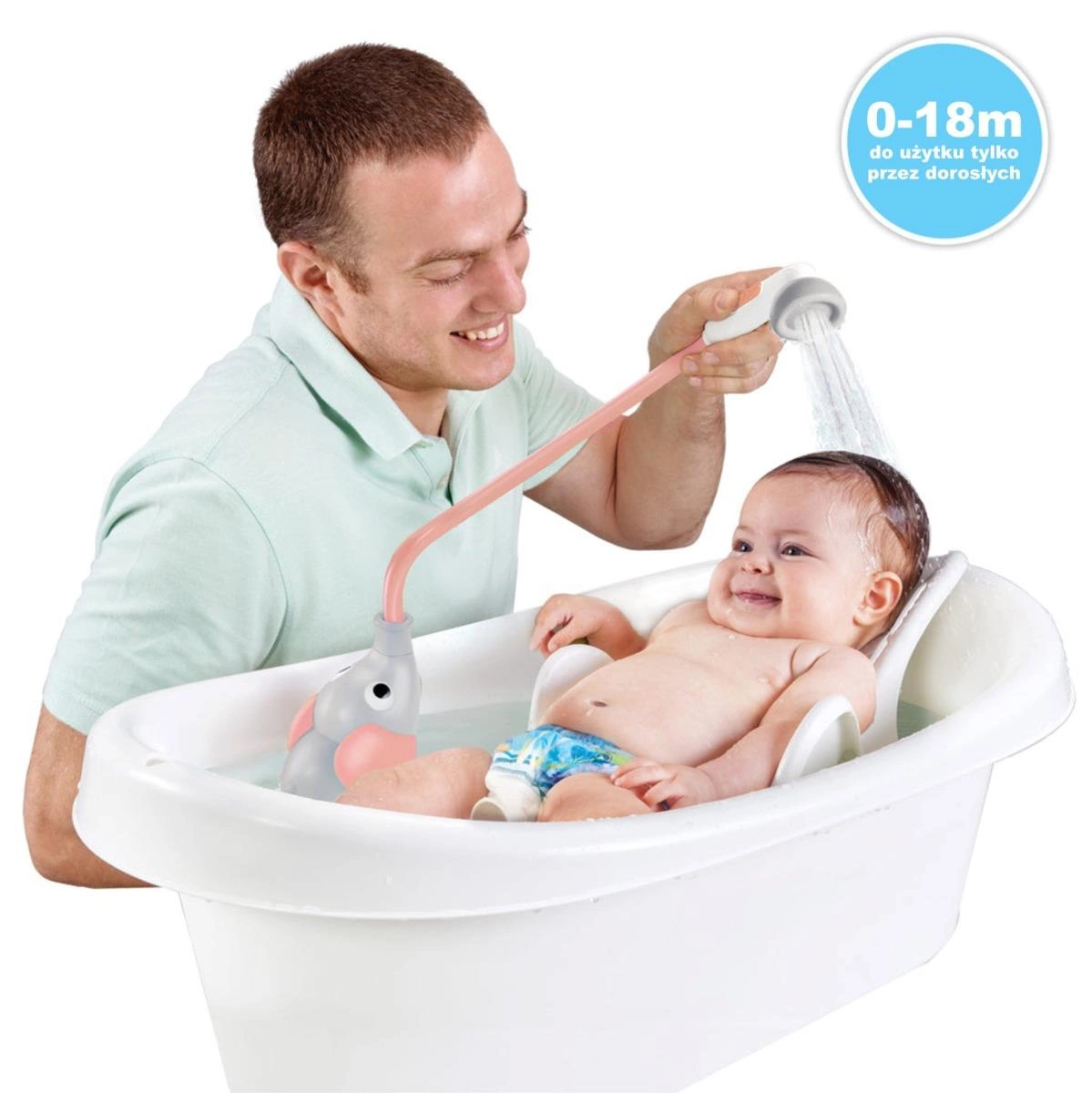 Aby korzystać z prysznica słonika należy umieść go w wannie. Upewnić się, że poziom wody wynosi co najmniej 10 cm. Aby aktywować strumień wody, należy nacisnąć przyciski znajdujące się po bokach słuchawki prysznica. Jeśli strumień ze słonika zatrzyma się, trzeba puścić przyciski i potrząsnąć słoniem w wodzie. Delikatnym i łagodnym strumieniem skierować ją na stópki, przyzwyczajając Malucha do wody i kąpieli. A gdy poczuje się swobodnie i komfortowo można kontynuować dalszą kąpiel.
