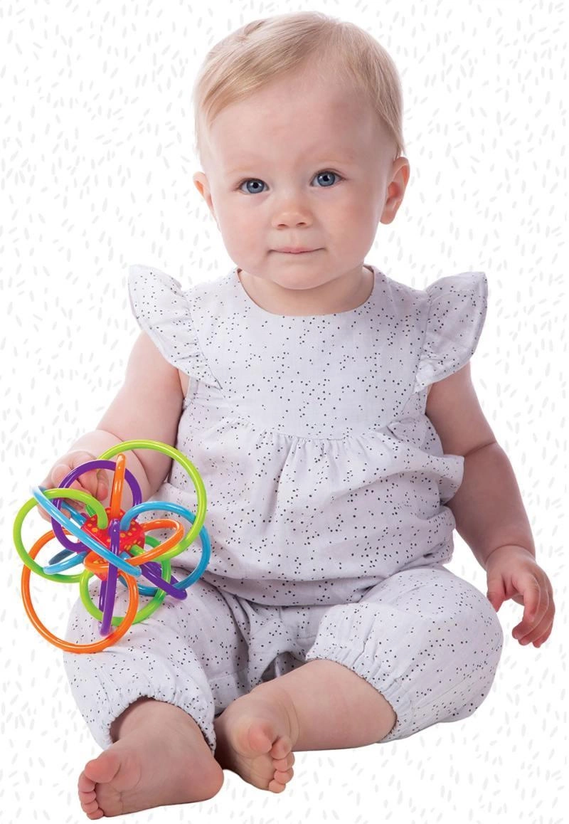 "Przestrzenna bryła z kolorowymi pętlami" to zabawka dla najmłodszych, która może być grzechotką, jak również gryzakiem. Kolorowe obręcze ułatwiają łatwe utrzymanie zabawki w malutkich rączkach oraz wzięcie jej do ust. Zabawkę można przechowywać w lodówce, dzięki czemu przyniesie ona ukojenie podczas ząbkowania każdemu maluchowi. Bryła wykonana została z wysokiej jakości tworzywa sztucznego, będącego w pełni bezpiecznym dla maluchów.