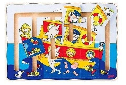 Całość wykonana z drewna. Na podstawie przymocowanych jest 9 kwadratowych, ruchomych elementów. Wymiary: 30 x 21 x 2cm Wiek: 3+ Referencja: 57597 Deklaracja zgodności CE