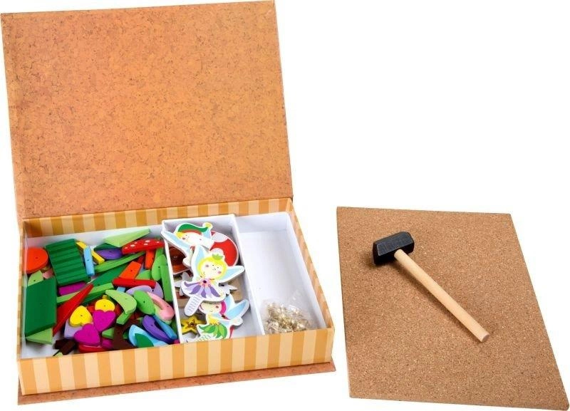 "Bajkowy świat wróżek" to przybijanka Small Foot składająca się z tablicy korkowej, młotka, gwoździ oraz drewnianych elementów do tworzenia niesamowitych historii.