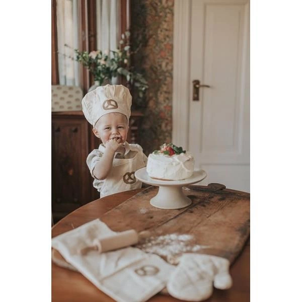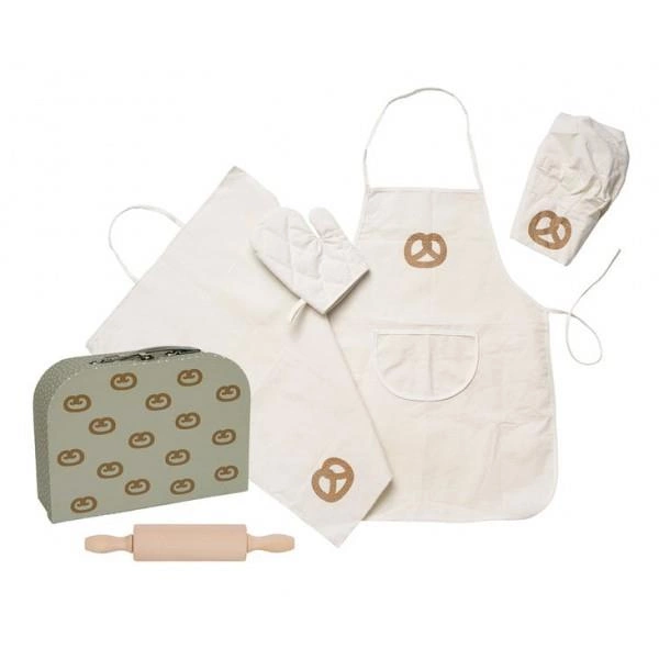 Przybornik kucharza walizka Jabadabado Teraz w końcu możesz zabłysnąć w kuchni jak prawdziwy mały szef kuchni. Z naszym 4-częściowym zestawem kuchennym możesz zasiąść w kuchni i pochwalić się swoimi umiejętnościami. Strój szefa kuchni jest ręcznie wyszywany uroczym preclem i można go nosić przez lata, zachęcając do kreatywnej zabawy. Teraz dzieci mogą naprawdę wyglądać jak profesjonaliści w kuchni dzięki temu zestawowi strojów szefa kuchni, w komplecie z fartuchem, czapką szefa kuchni i ściereczką kuchenną. Aby zabawa była jeszcze bardziej realistyczna, dołączony jest również zabawkowy wałek do ciasta. Wszystko zapakowane jest w praktyczną torbę, którą łatwo przechowywać i przenosić. Ten zestaw jest idealnym uzupełnieniem zestawów kuchennych i do pieczenia, pozwalając dzieciom spełnić marzenia o zostaniu szefem kuchni. Wykonany z trwałych materiałów, które wytrzymają wiele godzin zabawy. Odpowiednie dla dzieci w wieku 3-8 lat. Zestaw zawiera: 1 fartuch 1 czapka kucharska, 1 rękawica kuchenna, 1 ściereczka kuchenna wałek   Wymiary: 29 x 9 x 20 cm Jabadabado to szwedzka firma istniejąca na rynku od 1993 roku specjalizująca się w projektowaniu i produkcji zabawek drewnianych, elementów wyposażenia pokoi dziecięcych. Wszystkie produkty Jabadabado cechuje oryginalny design, piękna kolorystyka i niezwykle staranne wykonanie. Wszystkie zabawki marki Jabadabado stworzone są z myślą o dzieciach i pobudzają do kreatywnej zabawy.