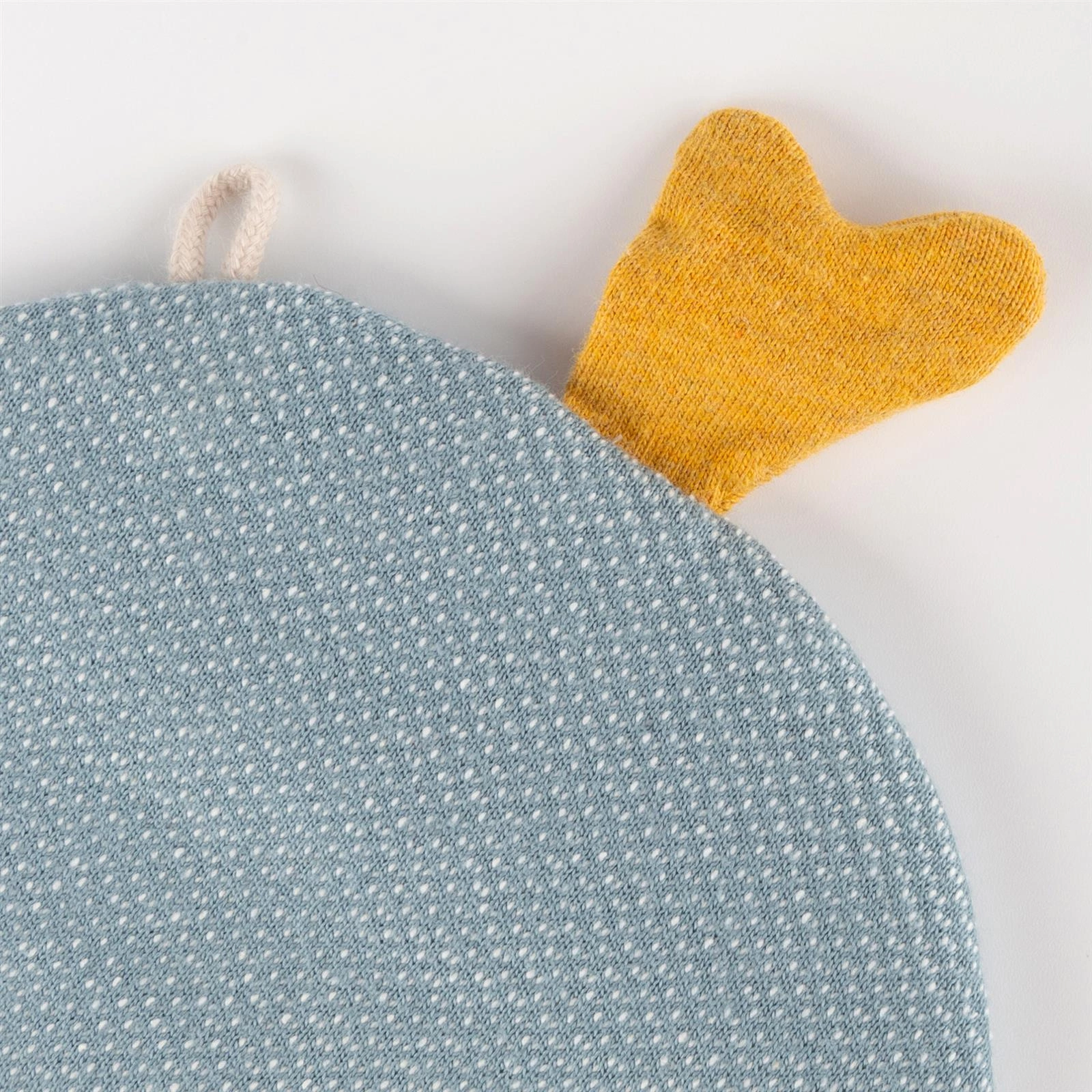 - Rozwija zmysł poznawczy i słuch dzięki różnorodnym teksturom materiału i wszytej szeleszczącej folii.