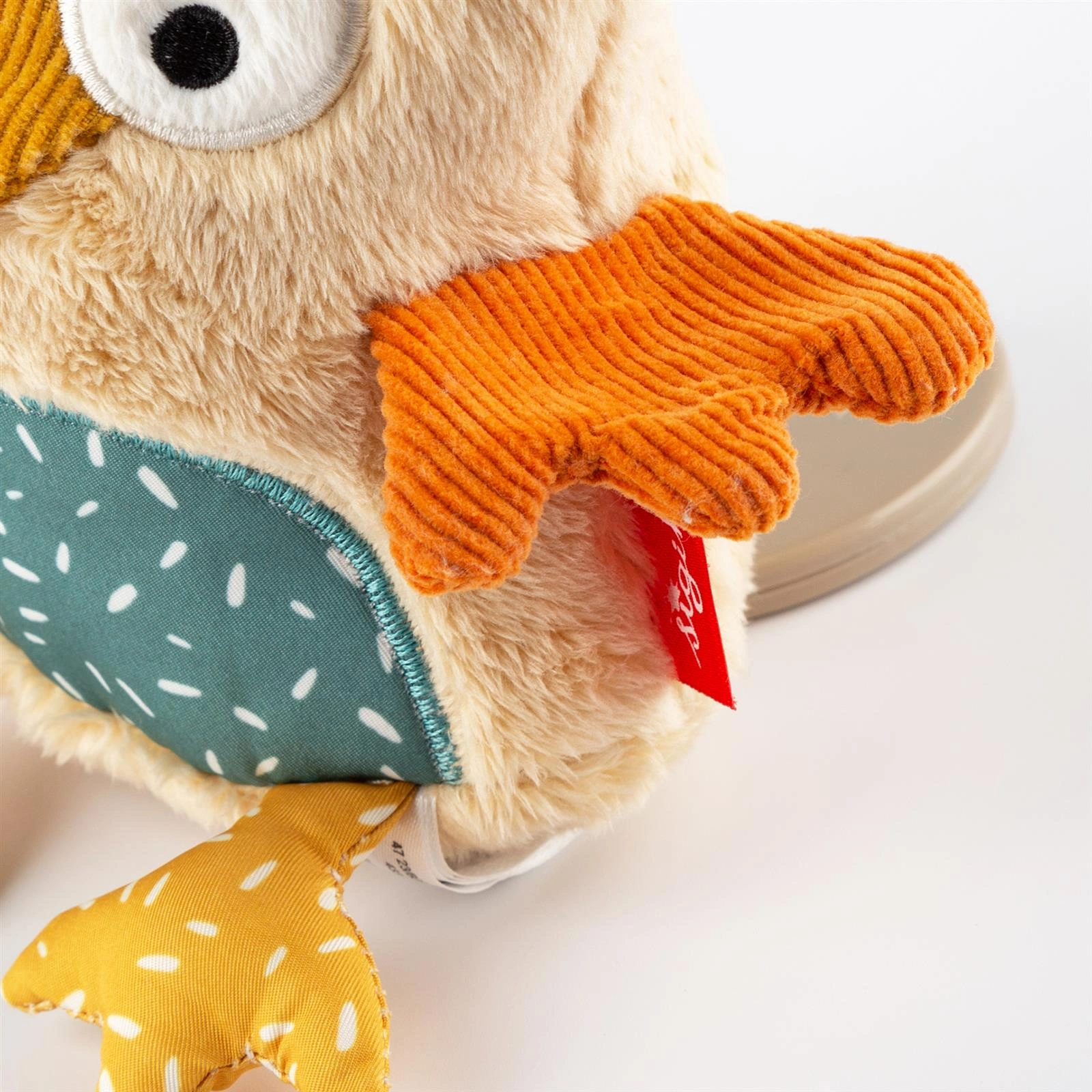Grająca przytulanka Sowa zachwyca przyjaznym wyglądem i kojącą kołysanką. Uszyta z miękkich tkanin o różnych strukturach stymuluje zmysł dotyku już od pierwszych dni życia.