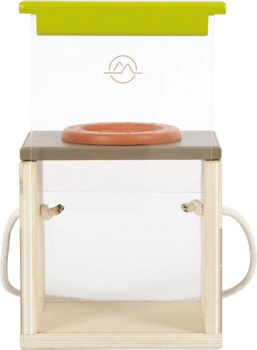 Każdy spacer może być wielką przygodą! Jeśli w Twoim domu rośnie prawdziwy miłośnik natury, pudełko na owady ze szkłem powiększającym do obserwacji przyrody (ożywionej i nieożywionej) Small Foot okaże się dla niego prawdziwą gratką! Ten wspaniałej jakości przyrząd badawczy pozwoli Twojemu dziecku poznać tajemnice świata przyrody. To wszechstronne pudełko umożliwia dzieciom prowadzenie ekscytujących obserwacji przyrody, niezależnie od tego, czy są w ogrodzie, parku, czy na wycieczce odkrywczej na łonie natury. Maluch będzie miał sposobność by zobaczyć z bliska chrząszcze, gąsienice i inne owady, które w odpowiednim powiększeniu są wręcz ekscytujące. Dzieci uwielbiają odkrywać otaczającą je przyrodę, sprawia im to olbrzymią radość. Pudełko na owady jest wykonane z wytrzymałego, w 100% certyfikowanego drewna FSC® i oferuje wspaniały widok na złapane pełzające stworzenia z trzech stron dzięki dwóm bokom z pleksiglasu i szkłu powiększającemu na górze. Całe gałązki i liście mogą zmieścić się we wnętrzu skrzynki obserwacyjnej, dzięki czemu złapane owady mogą być obserwowane bezstresowo i chronione. Skrzynka na owady ma otwory wentylacyjne, sznurek do przenoszenia jedną ręką i ruchome okienko z pleksiglasu, które można przesunąć do góry. Ta niepozorna zabawka to w istocie doskonały sprzęt badawczy do ekscytujących wędrówek przyrodniczych, wypraw i obserwacji w ogrodzie lub lesie, lub w terenie tuż przed drzwiami! Nadaje się również do badań mrówek, świerszczy lub owadów latających, takich jak biedronki lub motyle. Nic nie stoi na przeszkodzie aby za pośrednictwem tego pudełka dokonać także obserwacji niewielkich elementów roślinnych lub skał czy minerałów. Dzięki dużej ilości widocznego drewna, wzornictwu w kolorach ziemi i naturalnej zieleni, zaokrąglonym krawędziom i wysokiej jakości ilustracjom, to pudełko obserwacyjne przyciąga wzrok podczas każdego spaceru na łonie natury.