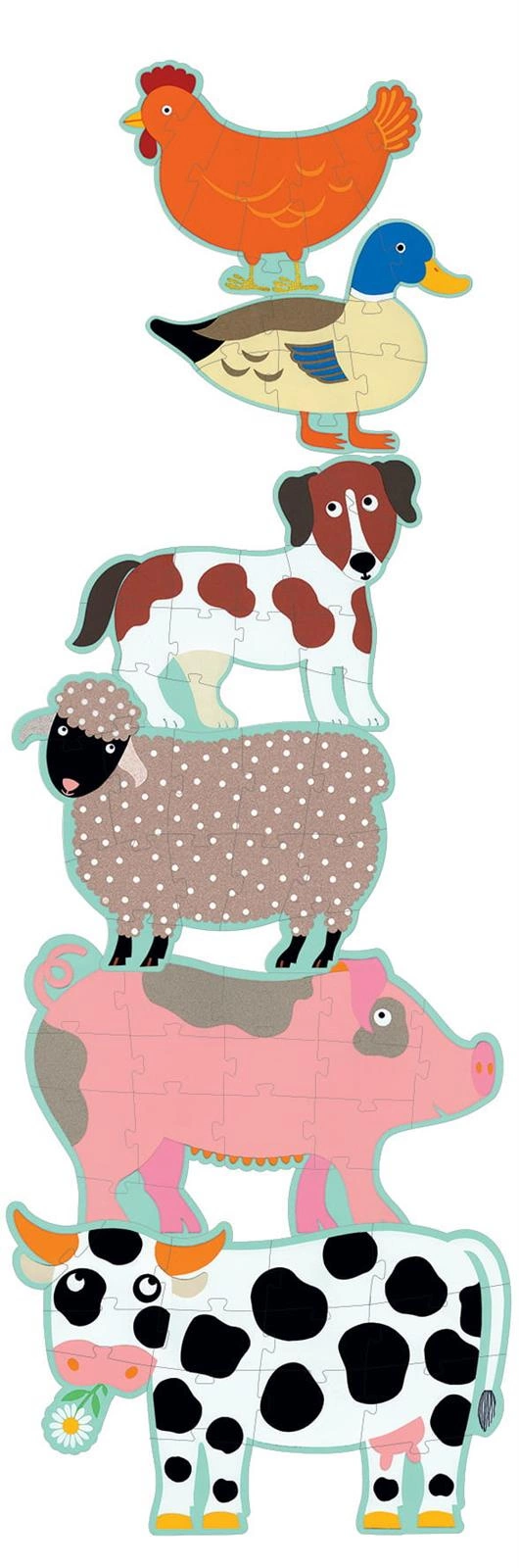 Tekturowe puzzle składajace się z 6 zwierzątek 9, 12 lub 15 elemetowych. Ułożone zwierzaki jeden na drugim będą tworzyć wieżę o wysokości 140 cm. Walory edukacyjne: rozwój wyobraźni, spostrzegawczości, koordynacji wzrokowej.