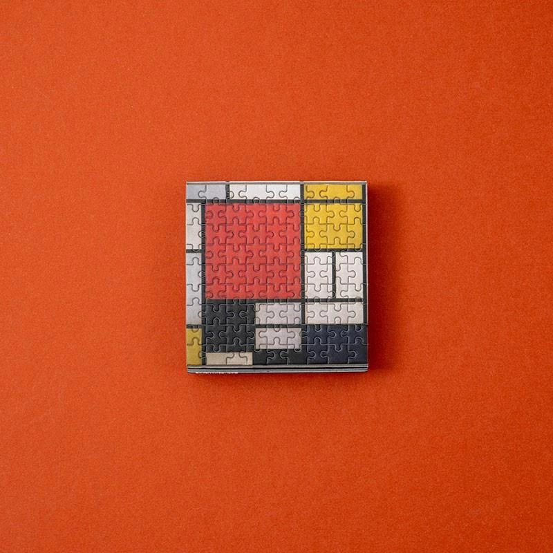 Puzzle dla dorosłych składające się ze 150 elementów, przedstawiające arcydzieło Mondriana „Kompozycja”. Idealna pamiątka i oryginalny prezent dla podróżników. Wyprodukowano w Barcelonie.