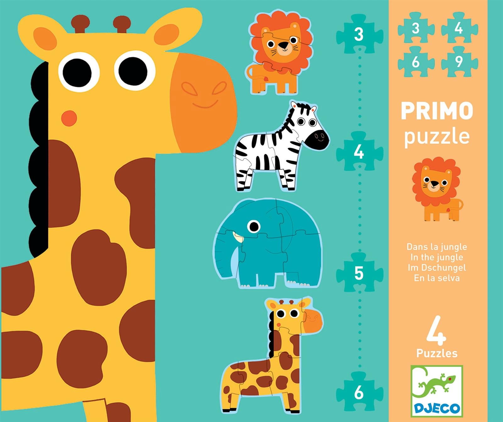 Puzzle firmy Djeco zaadresowane dla dzieci od 2 roku życia. Puzzle dają możliwość ułożenia 4 zwierzątek. Każde kolejne zwierzątko to wyższy stopień trudności (więcej elementów). Puzzle zawierają 18 elementów. Zwierzątka można ułozyć w wieżę o wysokości 70,9cm