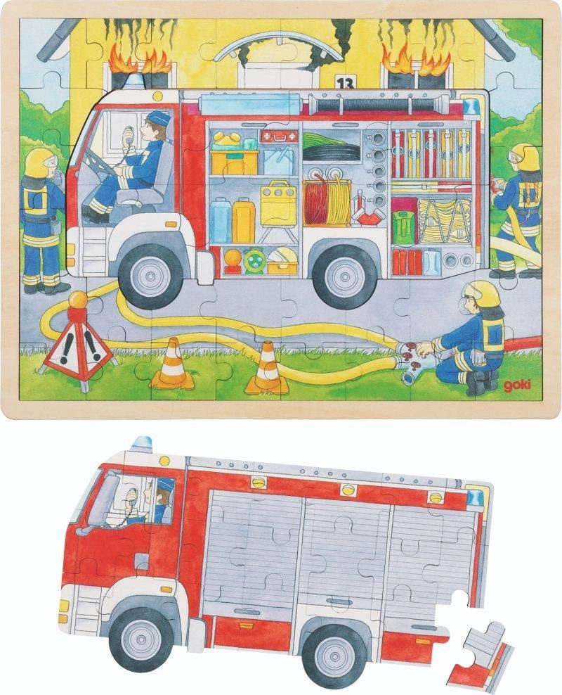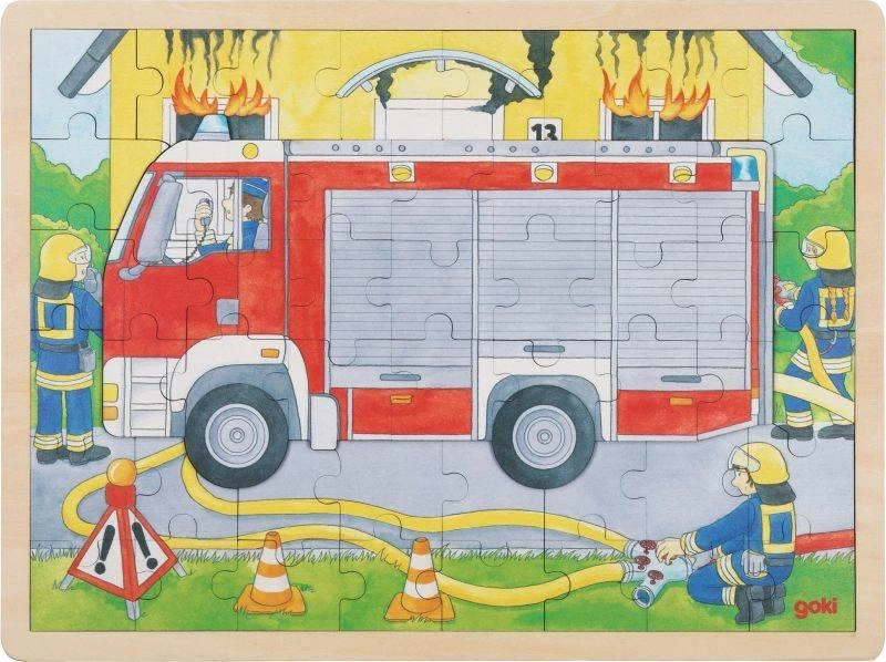 Puzzle warstwowe Straż Pożarna 60 elementów 57416-Goki, zabawki drewniane