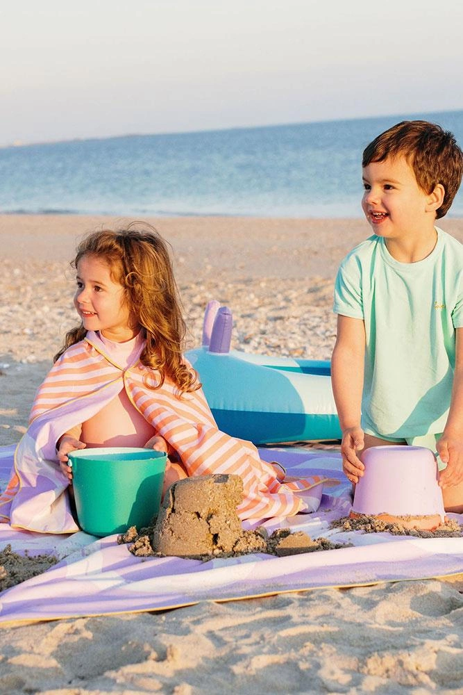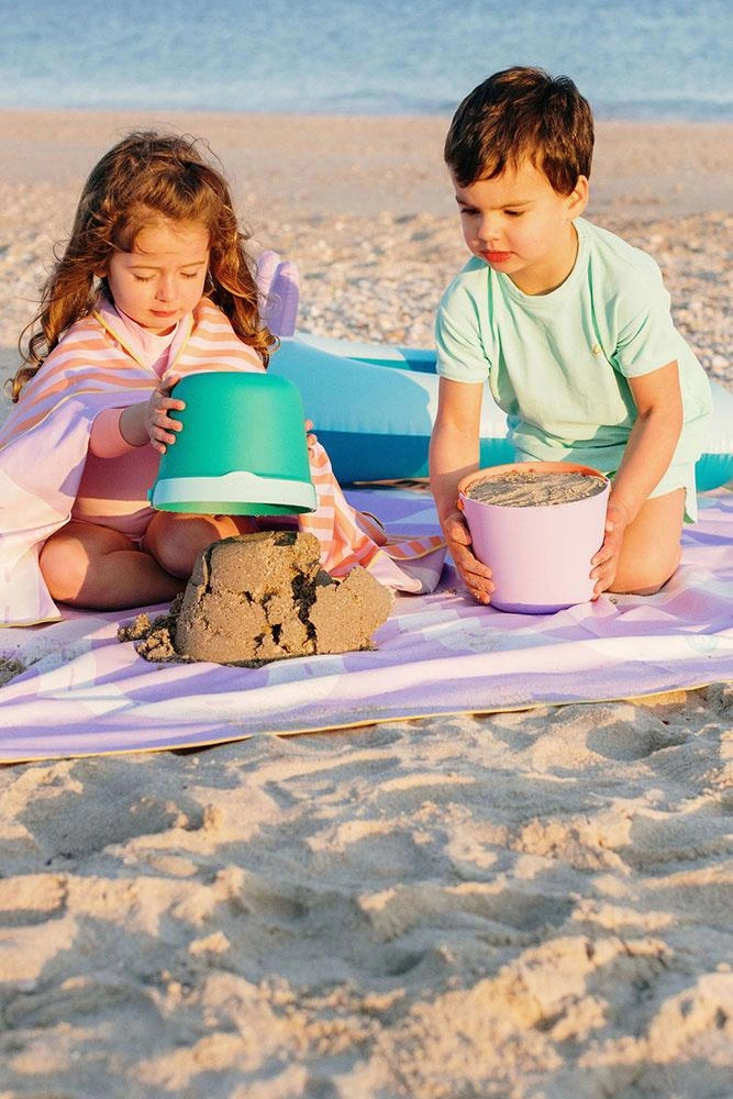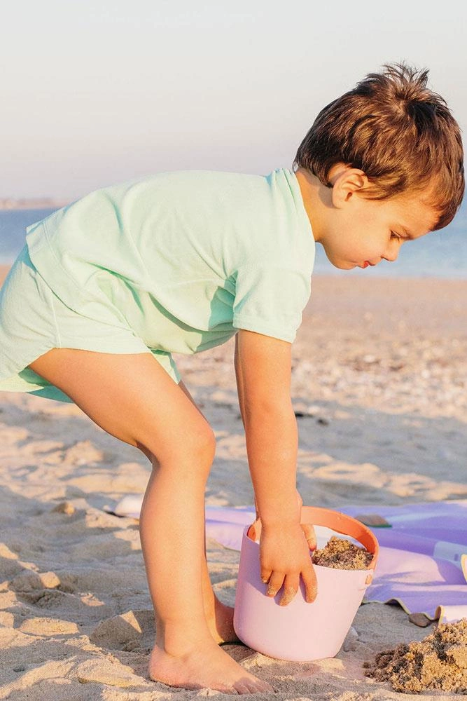 Wiaderko z sitkiem Bucki belgijskiej marki Quut przyciąga wzrok niebanalnym designem i oryginalną kolorystyką. Jest poręczne, lekkie i łatwe do utrzymania. Idealne do zabaw na plaży, w piaskownicy, budowania zamków, noszenia wody lub kamyków, szukania skarbów, np. muszelek lub bursztynów i innych rozrywek. Ma zaokrąglony kształt i szeroką wygodną rączkę, którą można złożyć, mocując ją na klik do brzegu wiaderka. W zestawie znajduje się obłe sitko w kontrastowym żółtym kolorze, z wyższymi brzegami i jedną większą dziurką, która może służyć jako uchwyt lub otwór na łopatkę czy grabki. Sitko mieści się na dnie wiaderka. Zestaw zapewnia inteligentną aktywność na świeżym powietrzu przez cały rok. Sprawdza się do zabaw w piasku, ale także w wodzie (nawet w wannie), śniegu czy ogrodzie.