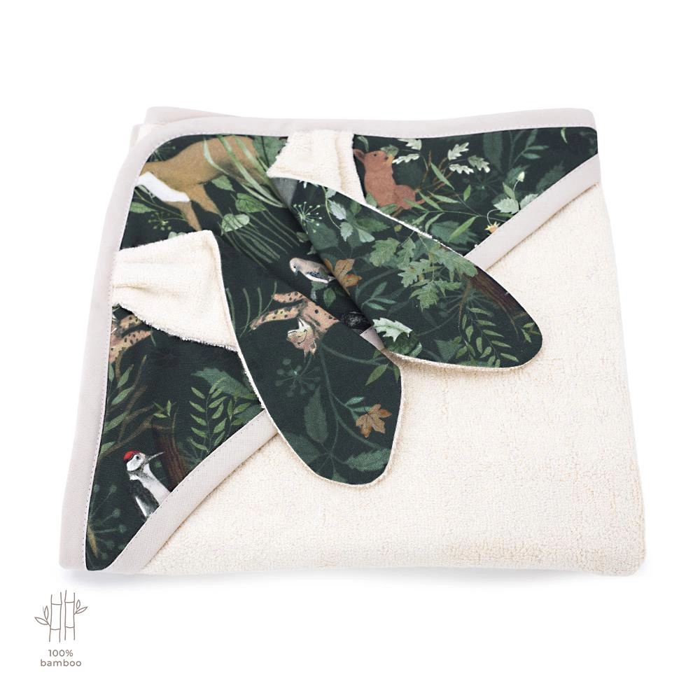 Mięsisty Ręcznik 100% Bamboo. Niezwykle mięciutki i puszysty ręcznik bambusowy niezbędny podczas codziennej higieny Twojego Maluszka. Sprawdzi się również na basenie, czy na plaży, otuli i ogrzeje delikatną skórę dziecka. Posiada praktyczny kapturek ze wzorem kolekcji, na kapturku przesłodkie uszka, a cały jest obszyty elegancką lamówką. W górnym rogu ręczniczek ma troczek ułatwiający zawieszenie. Bambus absorbuje wodę o 60% lepiej niż bawełna, pochłania nieprzyjemne zapachy i jest w pełni biodegradowalny. To najmilsza, najdelikatniejsza, a zarazem najbardziej naturalna tkanina jaką możesz podarować swojemu maleństwu. Bambus jest antybakteryjny, antyalergiczny i antygrzybiczny. Bambus, z którego tkany jest nasz materiał jest wolny od pestycydów i zanieczyszczeń. Ręcznik bambusowy można skompletować z różnymi produktami marki Makaszka, również innymi produktami 100% bamboo. Ręcznik 100% bamboo doskonale też sprawdzi się w formie stylowego prezentu dla małych pociech naszych przyjaciół, na baby shower i każdą inną miłą okazję.