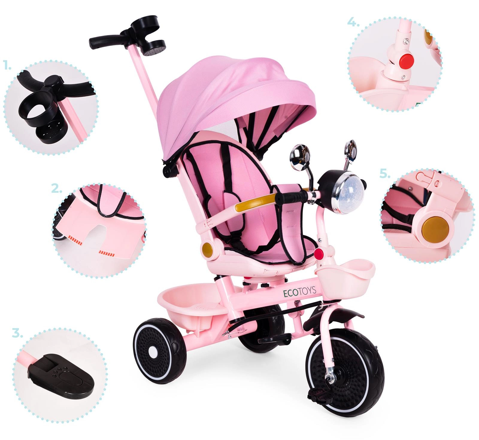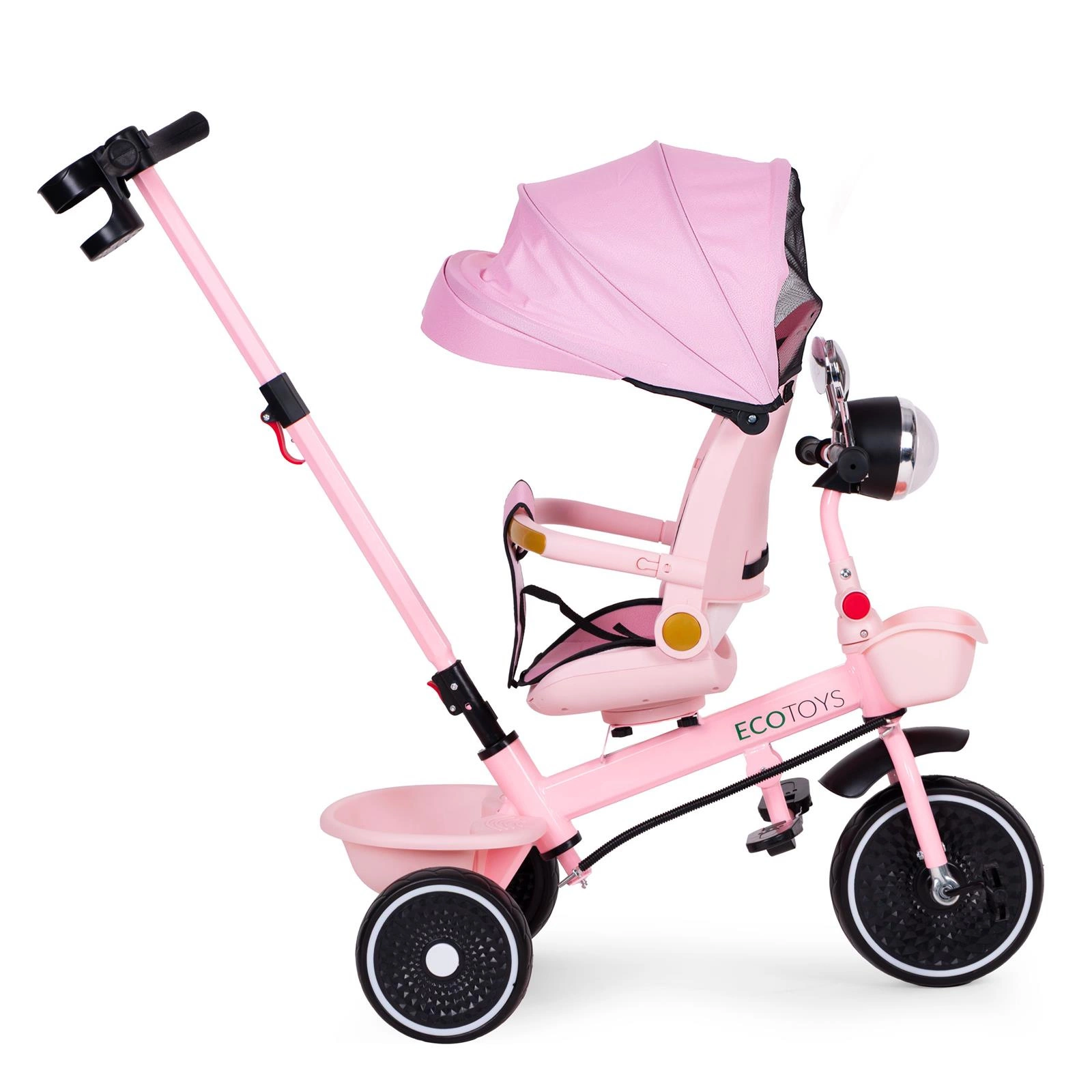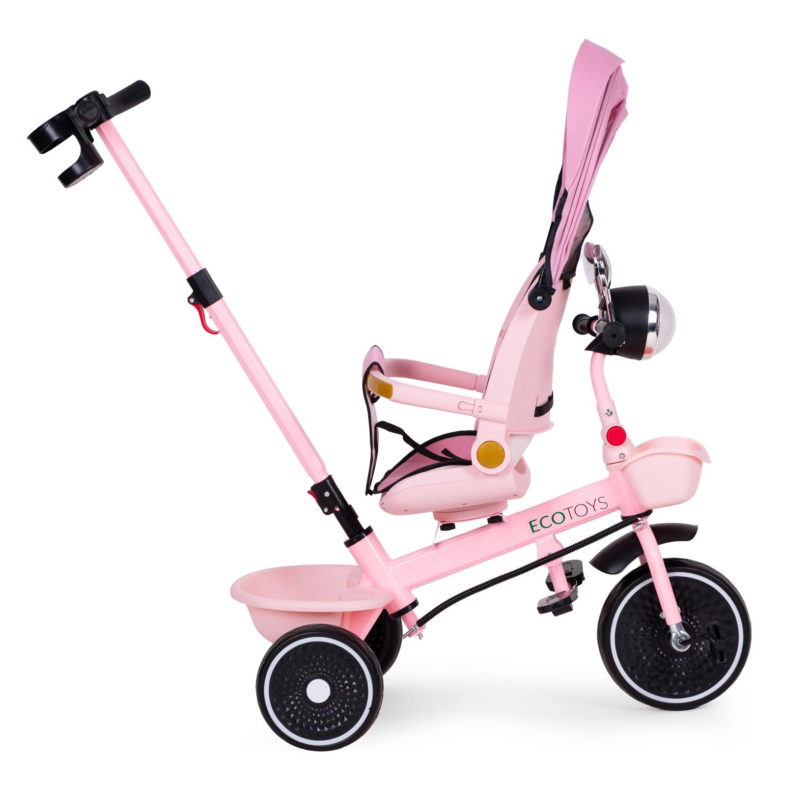 Rowerek trójkołowy dla dzieci spacerówka obracane siedzisko pchacz różowy ECOTOYS