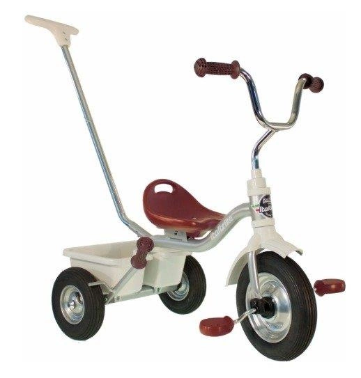 Ten funkcjonalny rowerek trójkołowy łączy w sobie wygodę i dobrą zabawę. Jest idealnym wyborem dla maluchów, które chcą się ścigać z mamą i tatą. Gumowe, pompowane koła i łożyska kulkowe gwarantują komfortową jazdę. Hamulec ręczny z boku zapewnia bezpieczeństwo. Rowerek został wyposażony w wygodny drążek do popychania z możliwością jego demontażu. Pojazd dla dzieci posiada pojemny kosz, który z pewnością pomieści wszystkie cenne skarby i zabawki. Trójkołowiec Hockenheim Racing Team marki Italtrike wyprodukowany został we Włoszech z wysokiej jakości materiałów.
