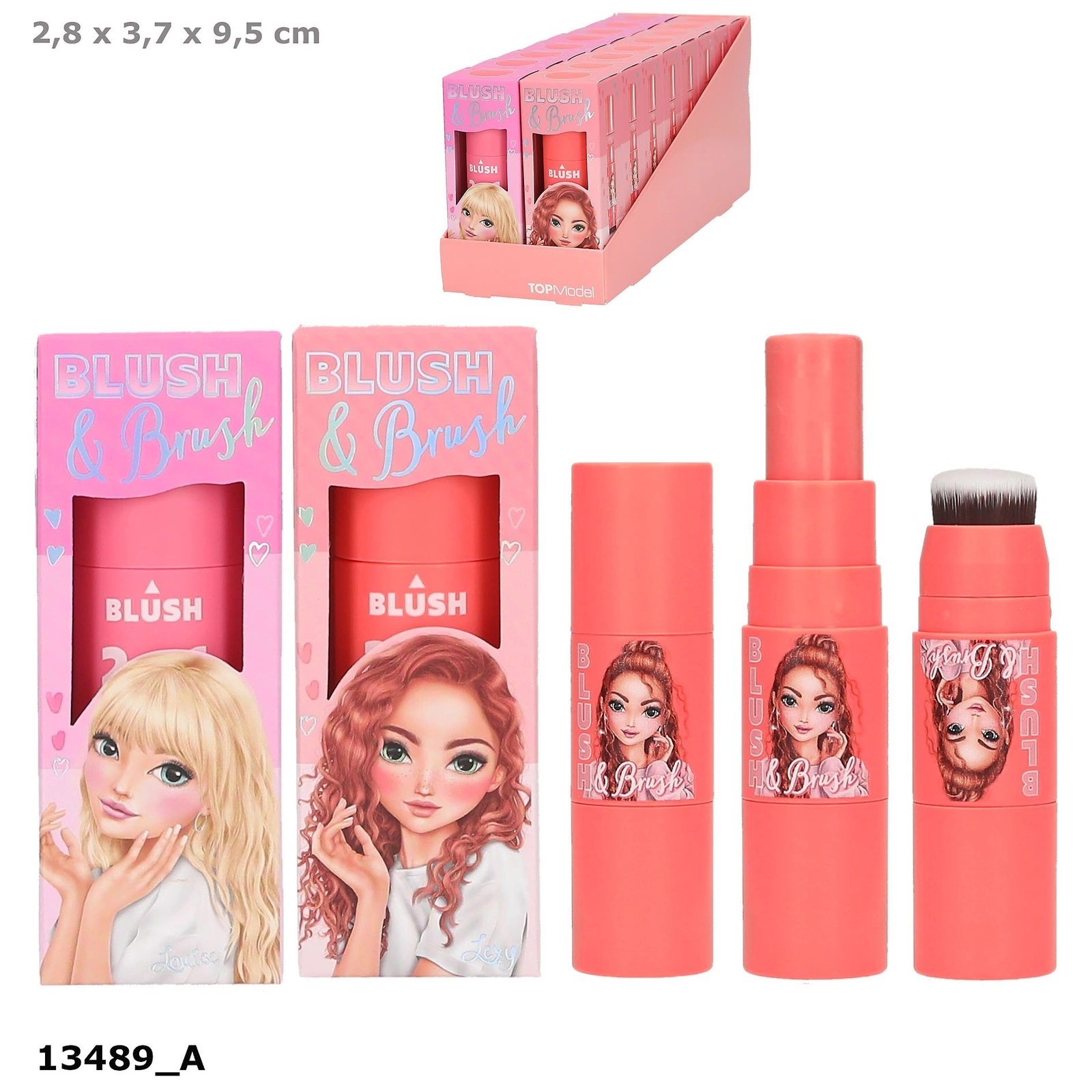 Róż z pędzelkiem TOPModel Beauty, z jednej strony wysuwa się sztyft różujący (6,8g), a drugiej pędzelek do rozprowadzania kosmetyku,
