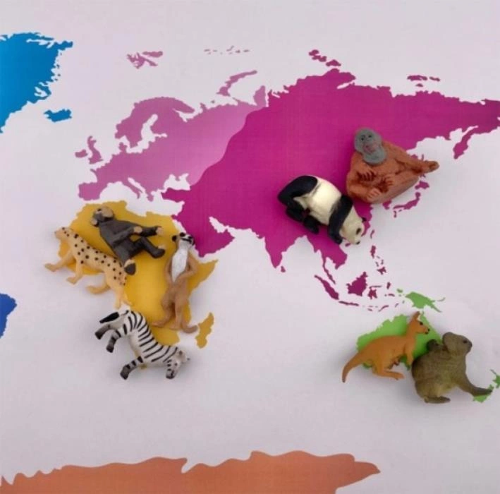- 8 mini figurek egzotycznych zwierząt: panda, orangutan, surykatka, gepard, kangur, zebra, koala i szympans.