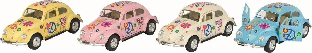 Metalowe autko dla dzieci z napędem. Tradycyjny Garbus z 1967 roku w charakterystyczne kwiaty.