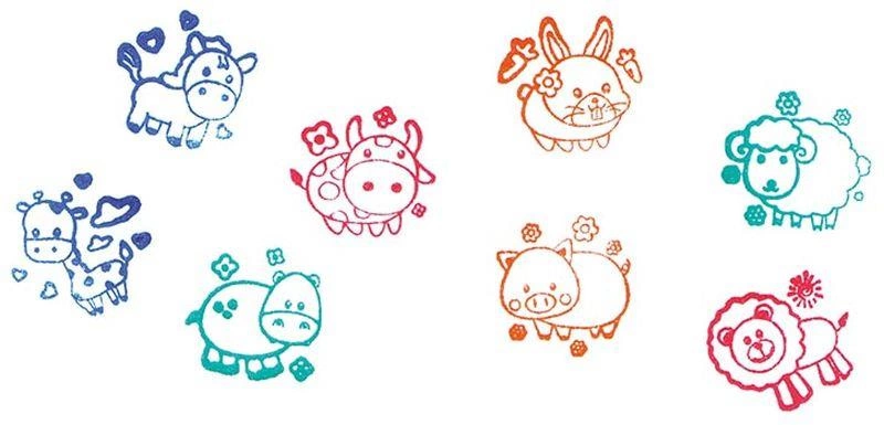 W komplecie znajduje się 8 okrągłych stempelków z motywami zwierzątek, które bardzo łatwo rozpoznać. Wśród nich znajdziemy słodkie maluchy takie jak m.in.: