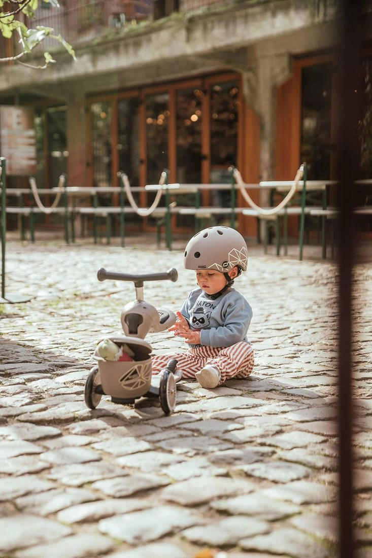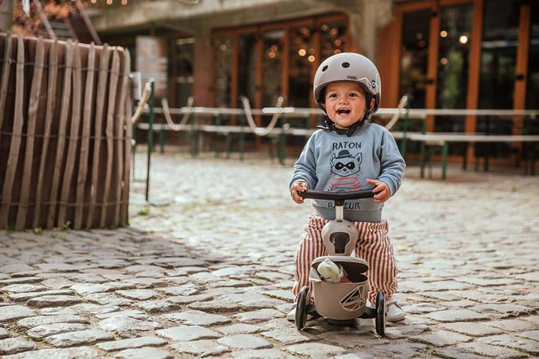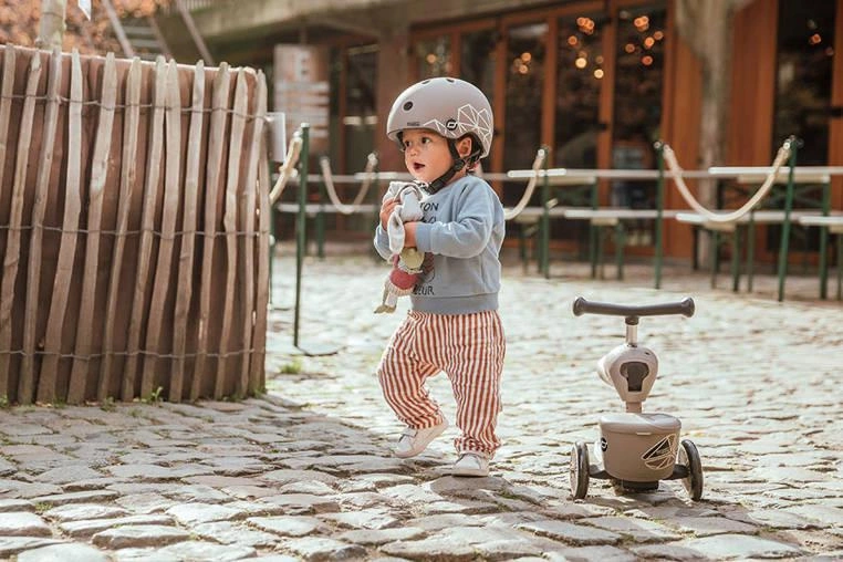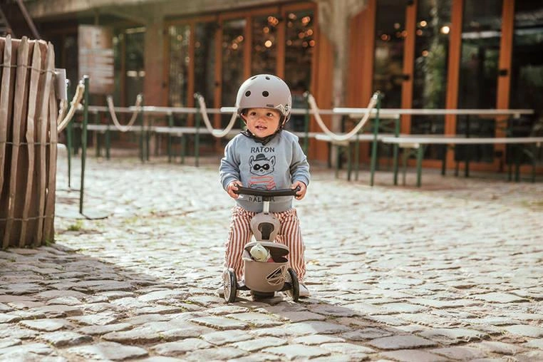 Bez używania narzędzi, za pomocą jednego guzika można w kilka sekund zamienić pojazd w hulajnogę na 3 kołach – obrócone siedzisko staje się jej przednią ramą. Wystarczy jeszcze przenieść kierownicę (montowana na klik) i gotowe! Teraz także starszak może rozpocząć swoją scaterską przygodę.