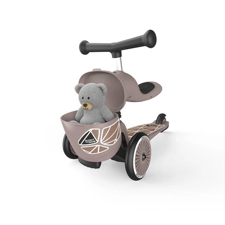 SCOOTANDRIDE Highwaykick 1 Lifestyle 2w1 Jeździk i hulajnoga z zamykanym schowkiem 1-5 lat Brown Lines