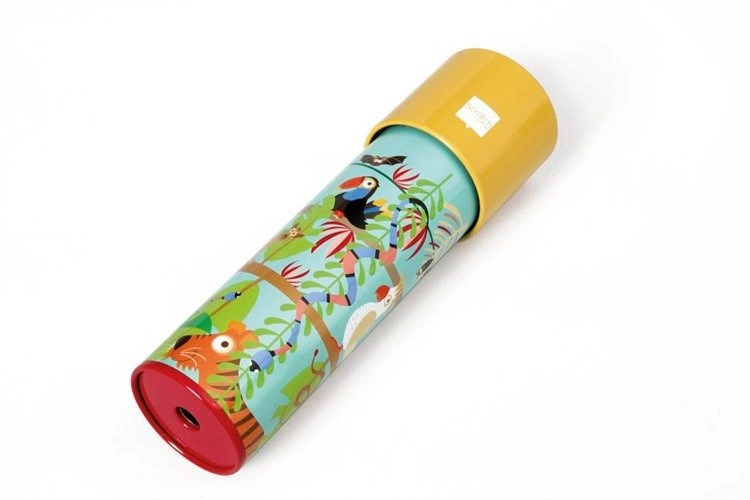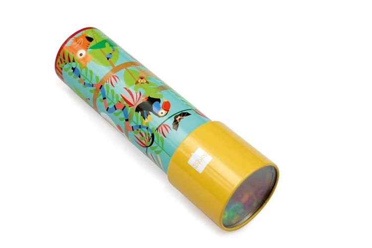 Wyobraź sobie, że jesteś turystą podróżującym w dżungli. Zanim się zorientujesz, znajdziesz się wśród wielu pięknych roślin i zwierząt tam zamieszkujących. Obracając kalejdoskop możesz nawet zmieniać kolory i kształty. Ilustrowany obrazkami z dżungli.