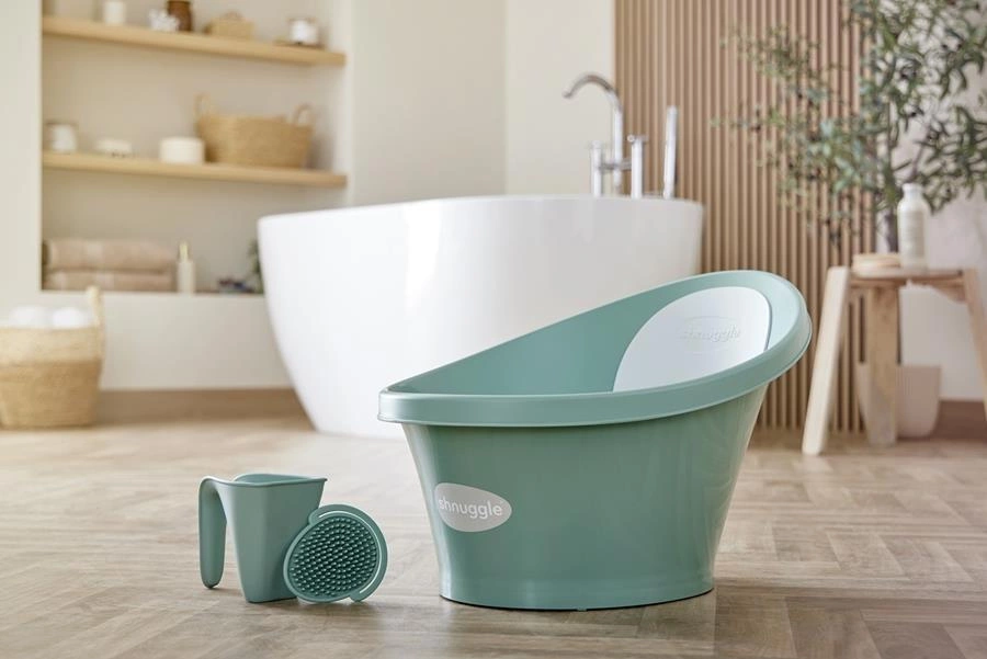 Miękkie silikonowe włoski szczotki Shnuggle pomagają delikatnie myć głókę dziecka, złuszczając naskórek ciemieniuchy z głowy.