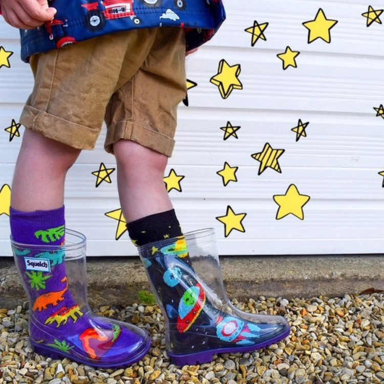 Skarpety do kaloszy dla dzieci w wielu fantazyjnych wzorach i kolorach. Wystarczy nabyć parę z wybranym motywem i od razu można cieszyć się oryginalną stylizacją na deszcz. Są miłe w dotyku, grube i ciepłe, zatem rodzice nie będą się martwić o zmarznięte stopy swojej pociechy. Dostępne w 3 uniwersalnych rozmiarach.