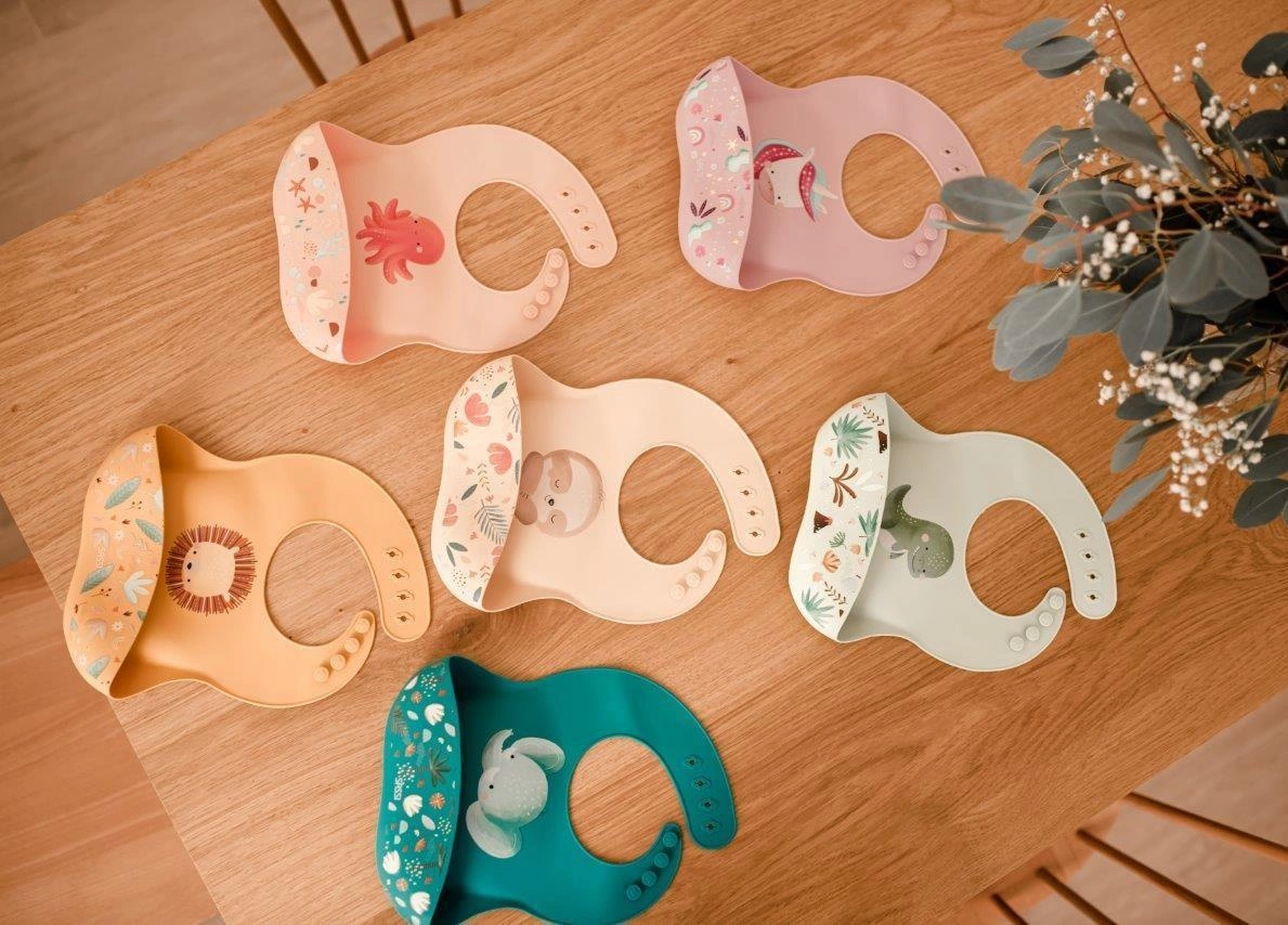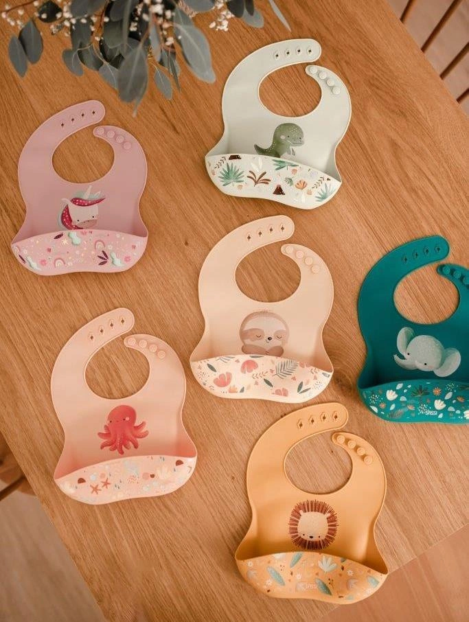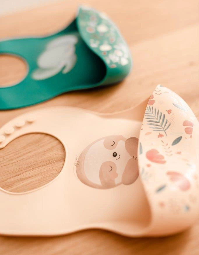 Śliniak silikonowy z kieszonką Leniwiec SASSI