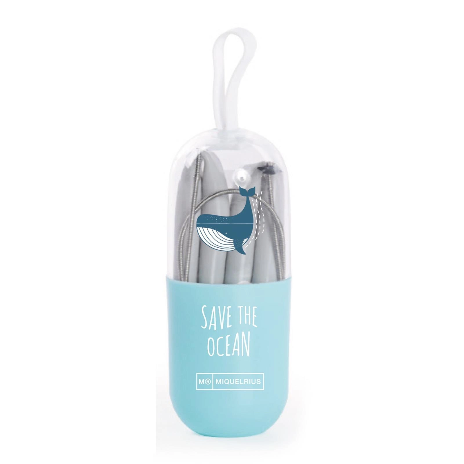 Słomka Save The Ocean wielokrotnego użytku. Wykonana została z nietoksycznego silikonu spożywczego, który jest ekologiczny oraz niezwykle wytrzymały. Zapakowana w pudełeczko z uchwytem, które można przymocować np. do plecaka, torby. Do zestawu dołączono czyścik, którym w łatwy sposób wyczyścimy słomkę w środku.