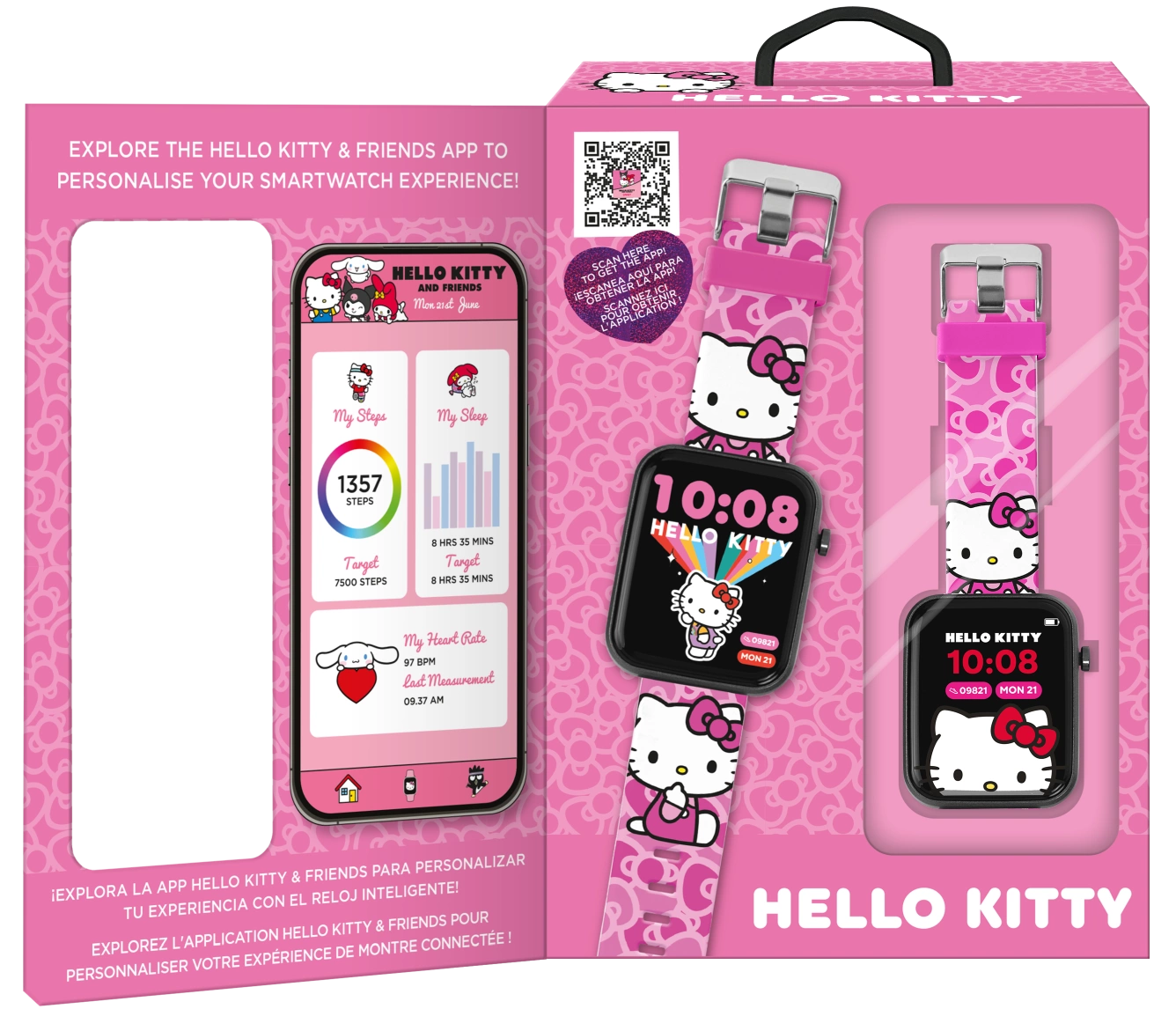 "Najważniejsze cechy:Zegarek łączy się przez Bluetooth z aplikacją HELLO KITTY & FRIENDS dostępną na iOS i Google Play Smartwatch pełen super mocy!Zaprojektowany dla energicznych maluchów i rodziców, którzy chcą zachować zimną krewFunkcje, które pokochasz:Kontroluj kameręZarządzaj muzykąAnalizuj swój sen Otrzymuj powiadomienia pogodoweMierz tętnoPrzypominaj o nawodnieniuMonitor aktywnościLicz krokiWysyłaj powiadomienia i przypomnieniaOdbieraj wiadomości i połączenia.A to jeszcze nie wszystko!Akcelerometr: wykrywa ruch Żyroskop: wykrywa orientację i pomaga zlokalizować zegarek z aplikacji - idealny dla tatusiów!Wodoodporny (IP68): gotowy na każdą przygodę Technologia, bezpieczeństwo i zabawa... wszystko na Twoim nadgarstku!