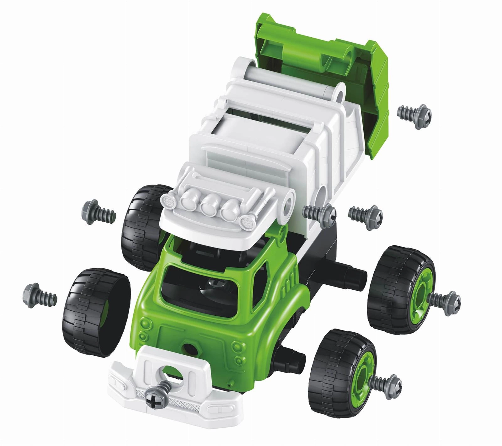 Zmontuj swoją śmieciarkę za pomocą wkrętarki, postępując zgodnie z instrukcjami krok po kroku.