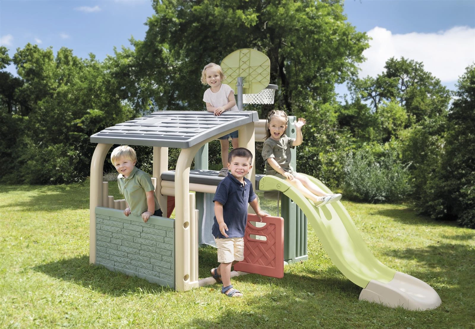 Smoby Centrum Zabawy to świetna przestrzeń do zabawy na świeżym powietrzu, która zapewni dzieciom wiele godzin aktywnej zabawy i rozwijania umiejętności. Zestaw łączy sport, zabawę i relaks, tworząc idealne miejsce dla maluchów. Dzięki różnorodnym elementom, ten kompleks stanie się ulubionym miejscem każdego malucha. Centrum zabaw Smoby to świetna zabawa na świeżym powietrzu, która łączy sport, relaks i kreatywność. Zjeżdżalnia, koszykówka, piłka nożna i ścianka wspinaczkowa to tylko część atrakcji, które rozweselą każdego malucha.