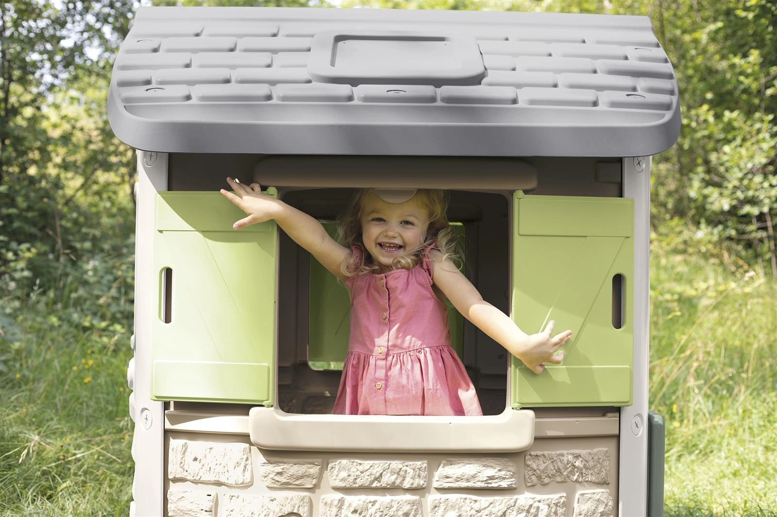•  - Możliwość rozbudowy – kompatybilny z dodatkowymi akcesoriami Smoby, takimi jak stół piknikowy, parasol, dzwonek do drzwi czy prysznic ogrodowy.