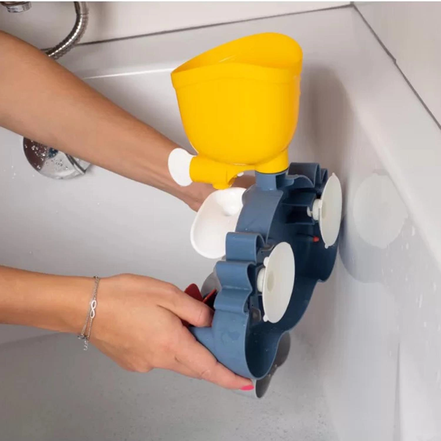 • - Dwie przyssawki pozwalają na umieszczenie zabawki w wannie lub pod prysznicem.