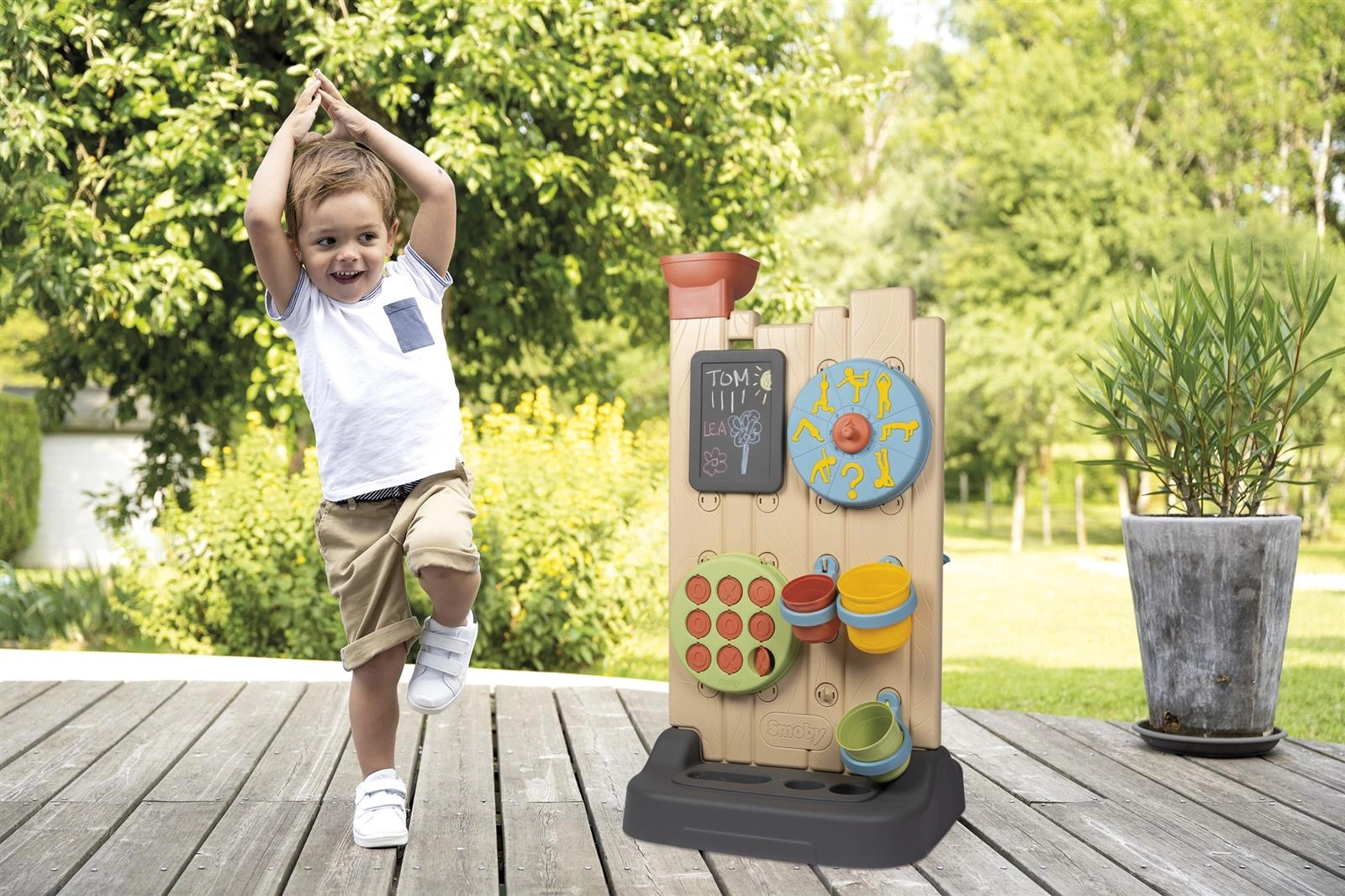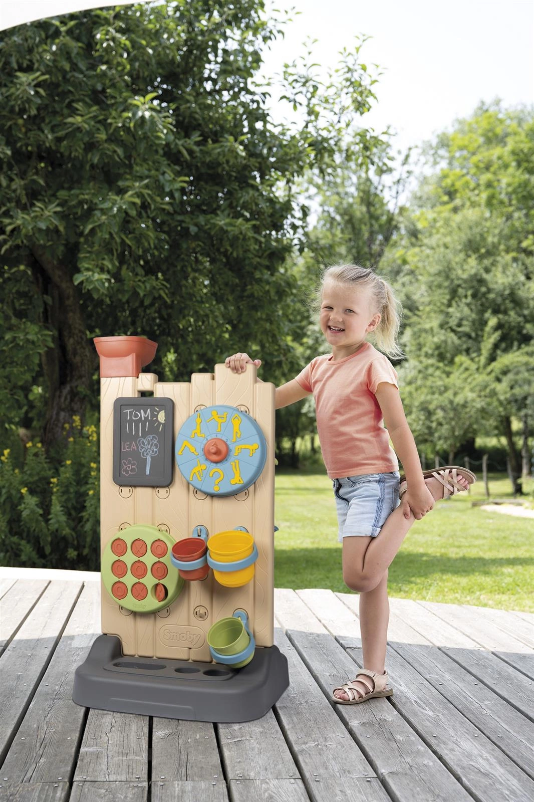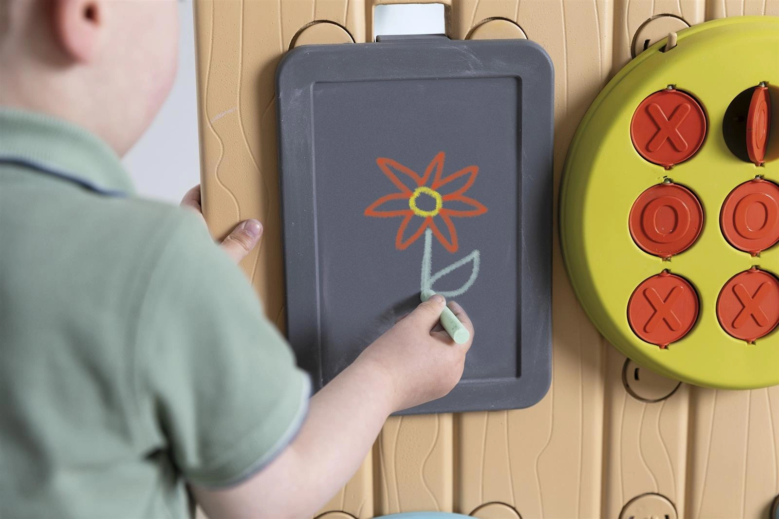 Smoby Ściana aktywności to wyjątkowa zabawka, która z pewnością zapewni dzieciom godziny świetnej zabawy, a przy okazji pomoże w rozwijaniu ich umiejętności motorycznych, kreatywności i logicznego myślenia. Produkt wykonany jest w 84% z plastiku pochodzącego z recyklingu, co czyni go ekologicznym wyborem. Ściana oferuje 6 różnorodnych aktywności i aż 29 akcesoriów, które mogą zapewnić dzieciom niekończącą się zabawę w ogrodzie, na patio, czy w pokoju dziecięcym.