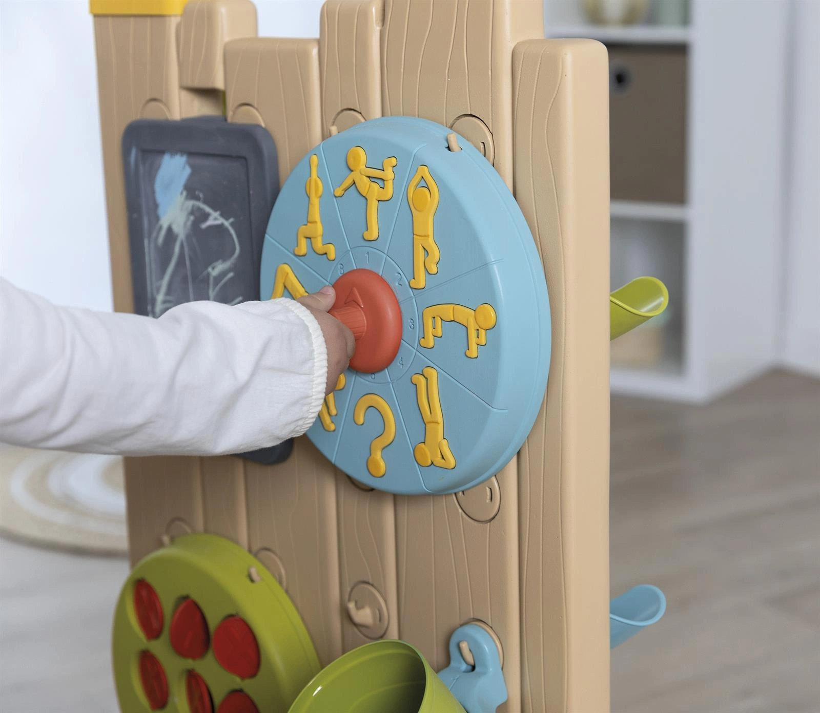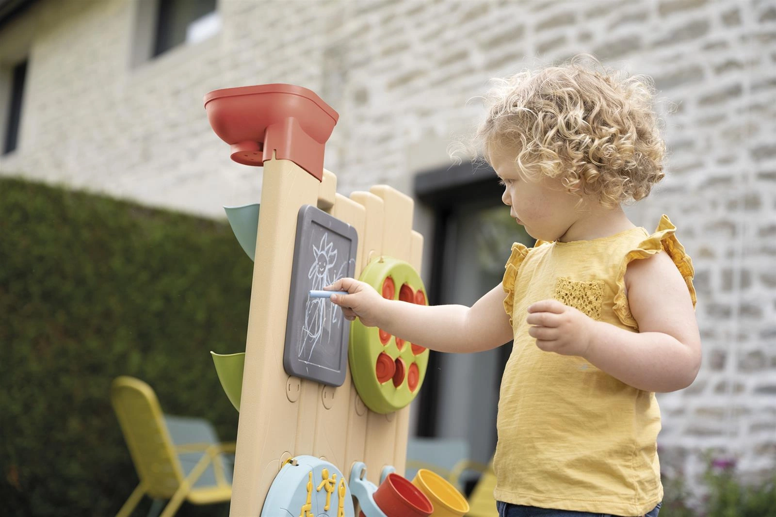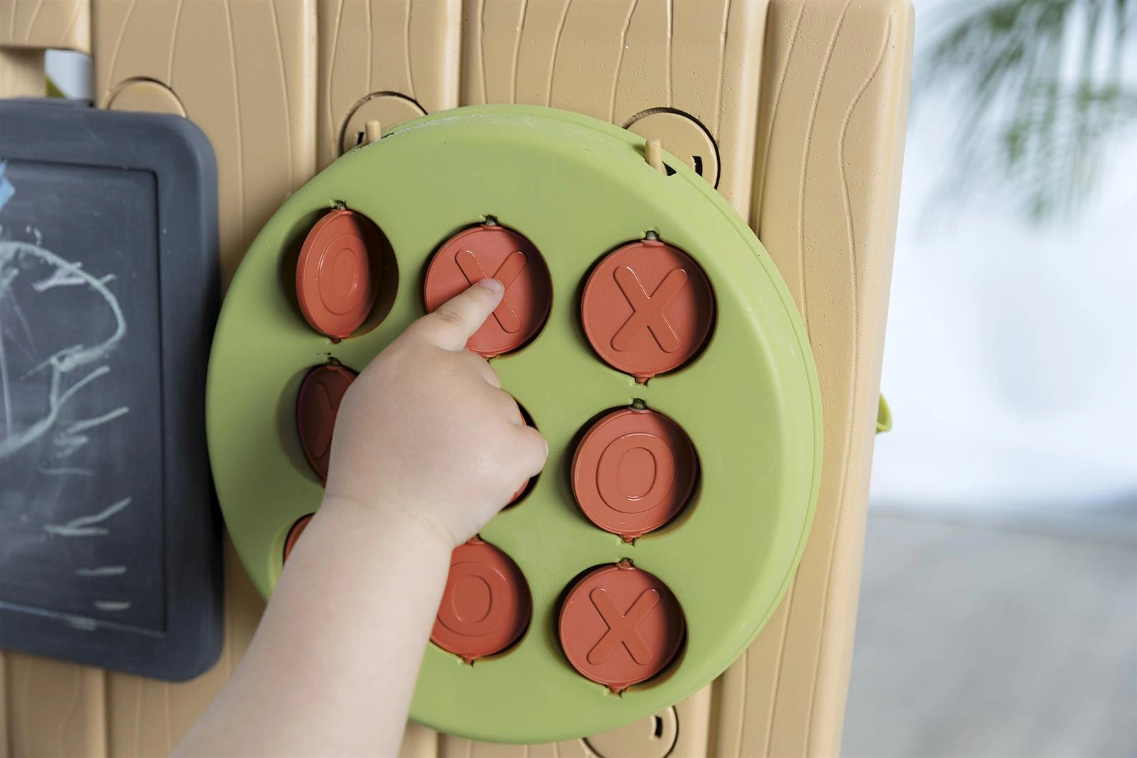 Smoby Ściana aktywności to wyjątkowa zabawka, która z pewnością zapewni dzieciom godziny świetnej zabawy, a przy okazji pomoże w rozwijaniu ich umiejętności motorycznych, kreatywności i logicznego myślenia. Produkt wykonany jest w 84% z plastiku pochodzącego z recyklingu, co czyni go ekologicznym wyborem. Ściana oferuje 6 różnorodnych aktywności i aż 29 akcesoriów, które mogą zapewnić dzieciom niekończącą się zabawę w ogrodzie, na patio, czy w pokoju dziecięcym.