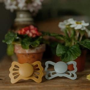 Smoczek FRIGG Butterfly to smoczek anatomiczny znany także jako ortodontyczny. Smoczek został zaprojektowany tak, aby wywierać mniejszy nacisk na podniebienie, dziąsła i szczękę. Spłaszczony u dołu i wypukły u góry, idealnie dopasowuje się do podniebienia dziecka. Zmniejsza to ryzyko krzywych zębów, czy krzywego zgryzu. Konstrukcja ortodontyczna jest idealna do wspierania prawidłowego rozwoju zębów, szczęki, i podniebienia dziecka. Wymusza również prawidłowe ułożenia języka. Smoczki FRIGG Butterfly przypominają kształtem motyla. Tarcza z falistymi krawędziami ma duże otwory przepuszczające przepływ powietrza, a w centrum znajduje się okrągły środek, który podkreśla elegancję smoczka. Tarczka smoczka została tak zaprojektowana, aby nie dotykać do ust i brody dziecka. Zapobiega to niechcianym zaczerwienieniom, krostkom czy wykwitom. Smoczek inspirowany jest pięknym motylem. Nie tylko przez wygląd, ale także przez magiczną transformację. Aby stać się motylem, gąsienica przechodzi proces transformacji od larwy do cudownego motyla. CECHY W 100% zaprojektowany w Danii W 100% wyprodukowany w Danii Dla zapewnienia pełnego bezpieczeństwa, każdy smoczek zostaje poddany testom symulującym siły które będą na niego działały podczas użytkowania. Smoczek pokryty delikatną warstwą SilkySoft™ dla lepszej imitacji piersi mamy Tarczka wykonana z bezpiecznego plastiku Polypropylene (PP) Nie zawiera BPA 0% Nie zawiera PVC 0% Nie zawiera ftalanów 0% Spełnia wymogi Unii Europejskiej EN1400 + A2 test Materiał: najbezpieczniejszy silikon medyczny, mający zastosowanie w przemyśle spożywczym, medycznym czy pielęgnacyjnym Rozmiar 1: 27 mm; Wiek: 0 - 6m. Rozmiar 2: 30 mm; Wiek: 6 - 18m Kształt: Anatomiczny INSTRUKCJA UŻYTKOWANIA Przed pierwszym użyciem, umieść smoczek w misce i zalej wrzącą wodą. Pozostaw na 3-5 minut. Nie zanurzaj na dłużej niż 5 minut. Wyjmij go i umieść na płaskiej powierzchni do wyschnięcia. Nadmiar wody wyciśnij. Nie używaj sterylizatorów, kuchenek mikrofalowych ani zmywarek. Ze względów bezpieczeństwa i higieny zalecamy wyrzucenie smoczka po 1 (intensywne używanie) -2 miesiącach (okazjonalne używanie) używania. Zawsze sprawdź stan smoczka przed użyciem i wyrzuć go przy pierwszych oznakach uszkodzenia lub zużycia.Potrzebujesz pomocy? Masz pytania?Zadaj pytanie a my odpowiemy niezwłocznie, najciekawsze pytania i odpowiedzi publikując dla innych.