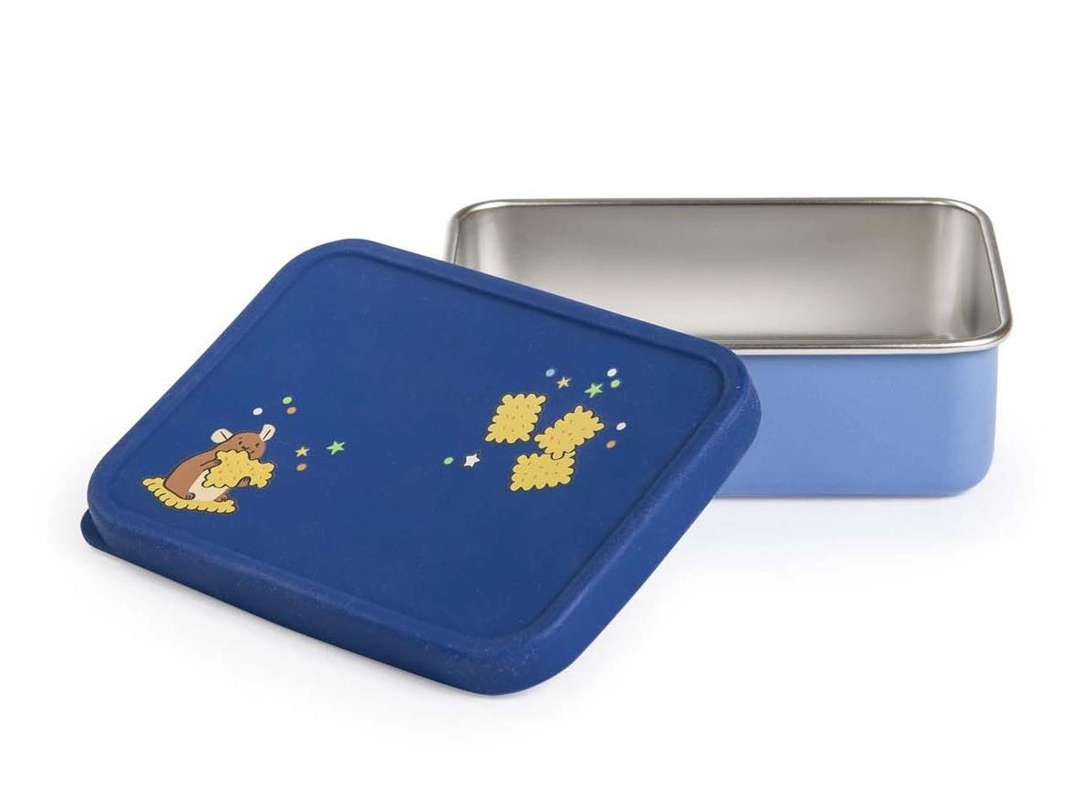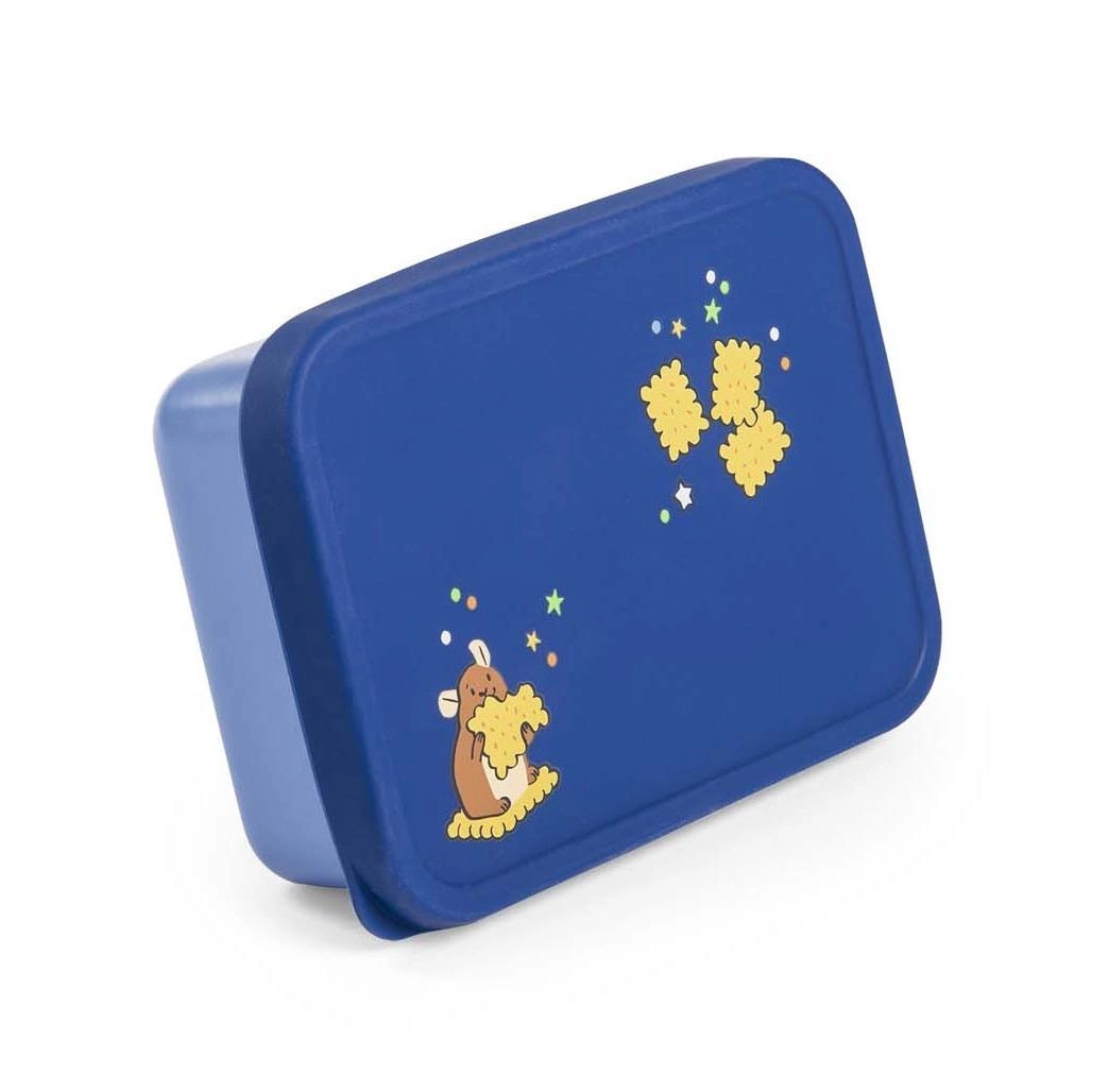 Bajeczna śniadaniówka z kolekcji Puce & Pilou umili każdy posiłek podczas szkolnej przerwy lub wycieczki. Wykonana z materiałów bezpiecznych w kontakcie z żywnością. Dno pudełka ze stali nierdzewnej przykrywa się silikonowym wieczkiem ilustrowanym uroczym chomiczkiem z ciasteczkami. Śniadaniówka jest szczelna i wygodna w użytkowaniu.