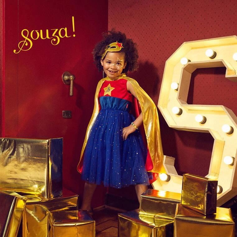 Souza! to holenderska marka, oferująca przebrania i szeroki wybór akcesoriów dla dzieci. Sukienki wizytowe, kostiumy, pantofelki, peleryny, skrzydła, tiary, biżuteria, maski, korony, kapelusze, tarcze, torebki, różdżki, spinki i kosmetyki tworzą wyjątkowe radosne kolekcje. W Souza! wszystko kręci się wokół fantazji i wyjątkowego designu, nieustannie inspirowanego nieskończonymi możliwościami, jakie daje łączenie materiałów i kolorów. Wysokiej jakości tiulowe sukienki, kostiumy czy pantofelki to propozycje nie tylko na karnawał, ale również do noszenia na co dzień przez cały rok, czy przy okazji różnych uroczystości. Całości dopełniają w pełni bezpieczne, nieuczulające, wegańskie kosmetyki dla dzieci i bogata oferta ozdób do włosów, tak lubianych przez małe dziewczynki!