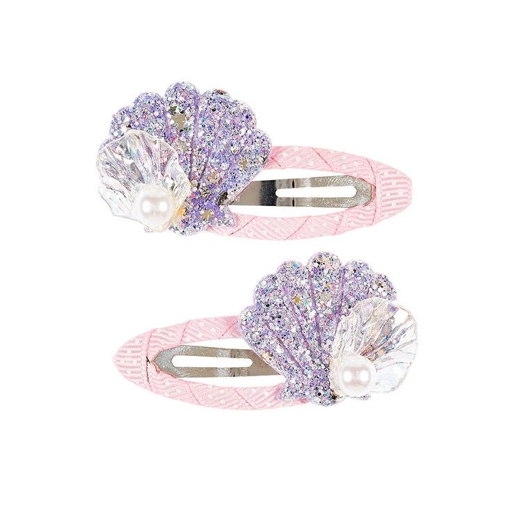 Souza! Spinki do włosów owinięte wstążką z brokatową muszlą i perłą fioletowe Rhode 2 szt.
