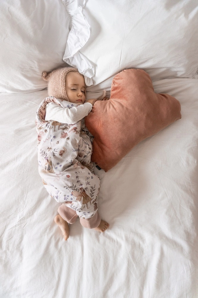 Śpiworek wykonany jest obustronnie z mięciutkiej dzianiny bawełnianej Interlock. W środku wypełniony antyalergiczną, lekką, silikonową włókniną zapewniającą ciepło i jeszcze więcej miękkości maluszkowi.